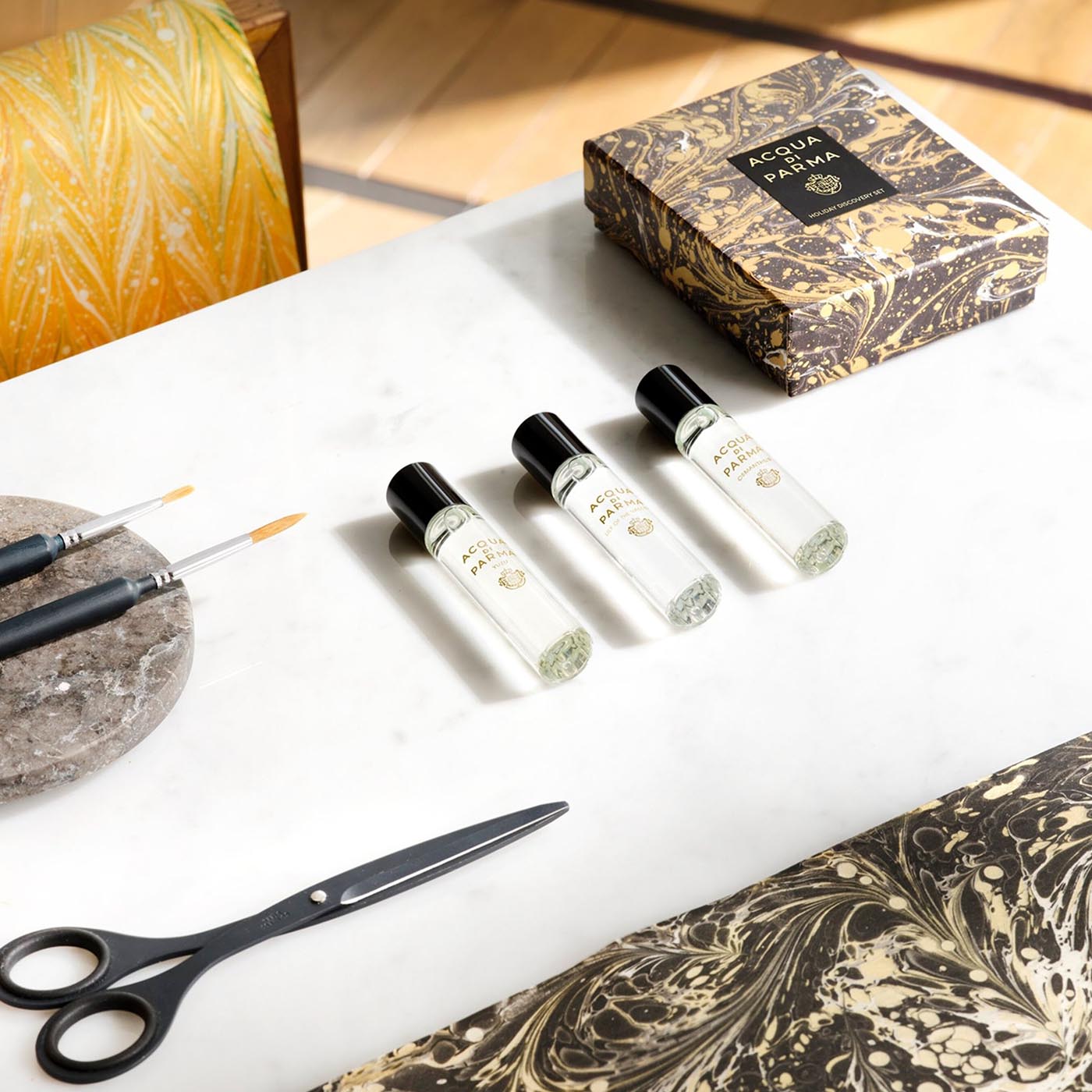 استمتع بجوهر الفخامة الإيطالية مع مجموعة Acqua Di Parma Holiday Discovery Set.