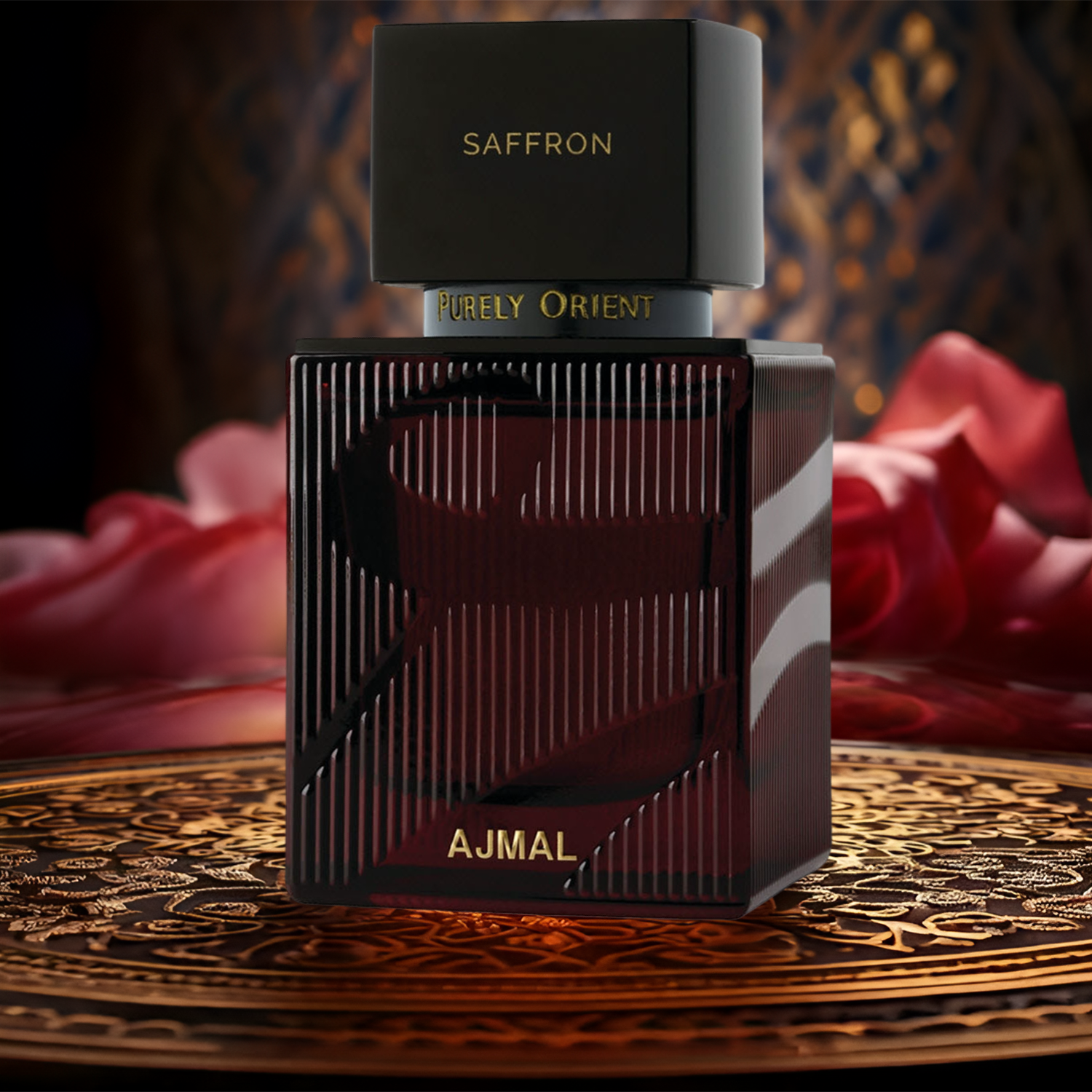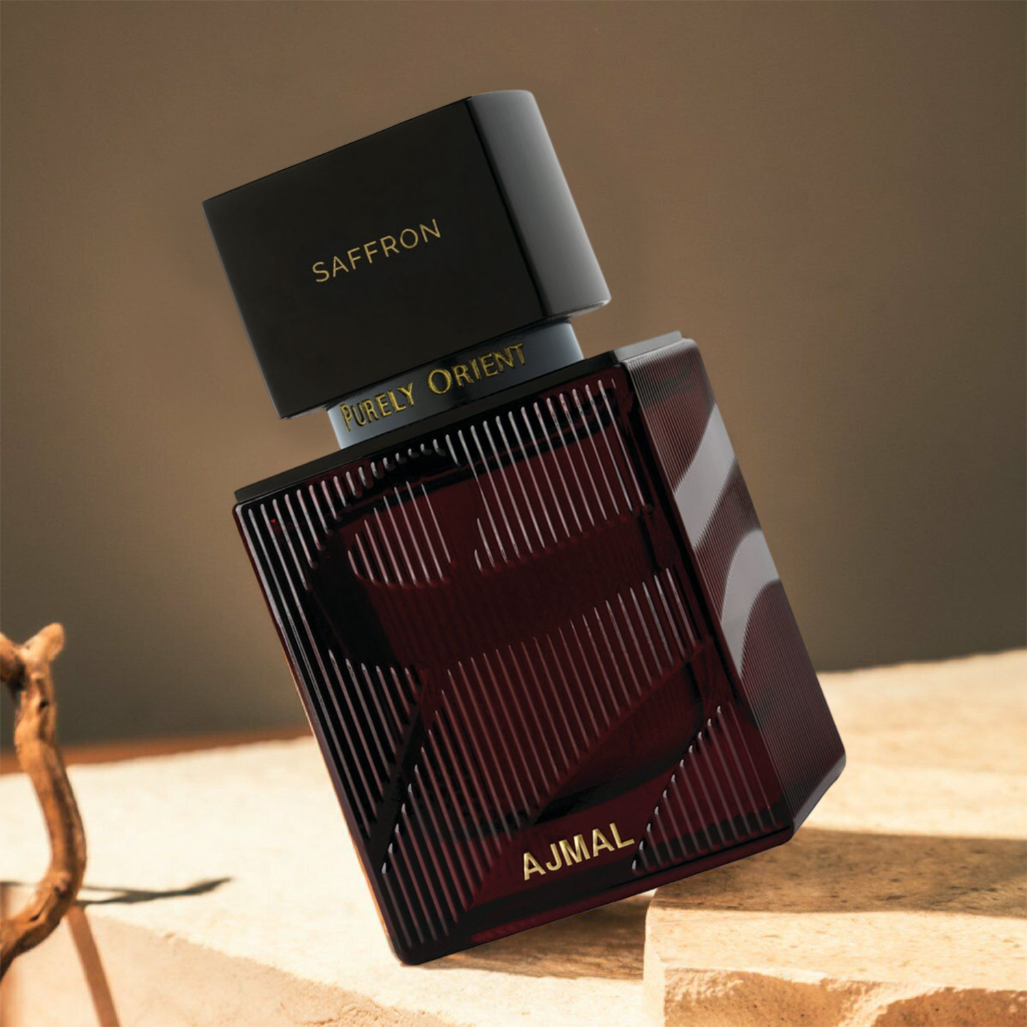 يقدم عطر Ajmal Purely Orient Saffron EDP رحلة عطرية شرقية غنية مع نفحات من الزعفران والمسك وخشب الصندل.