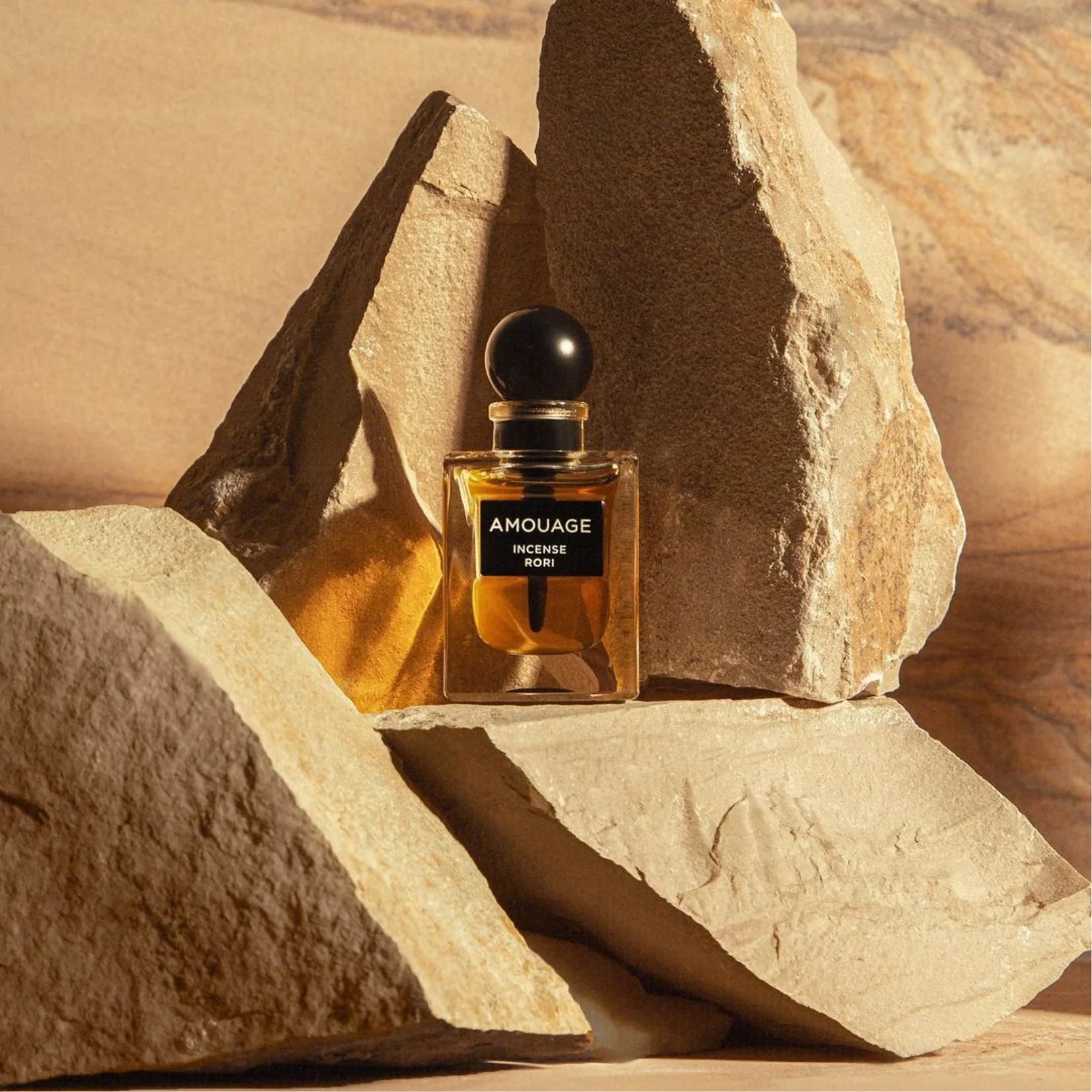 Amouage Incense Rori Pure Parfum smells like a warm blend of spicy and woody scents mixed with calming incense, capturing the magical essence of Oman's Khor Rori at dusk.