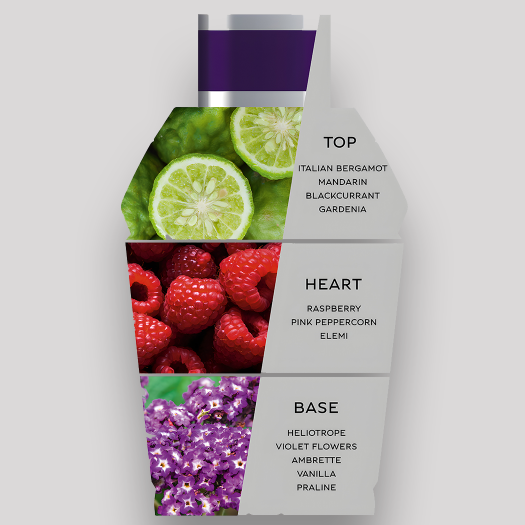 يتميز هذا المنتج برائحة زهرية لطيفة مع لمحات من الفانيليا والبرالين، مع لمسات فاكهية من الكشمش الأسود والفراولة.