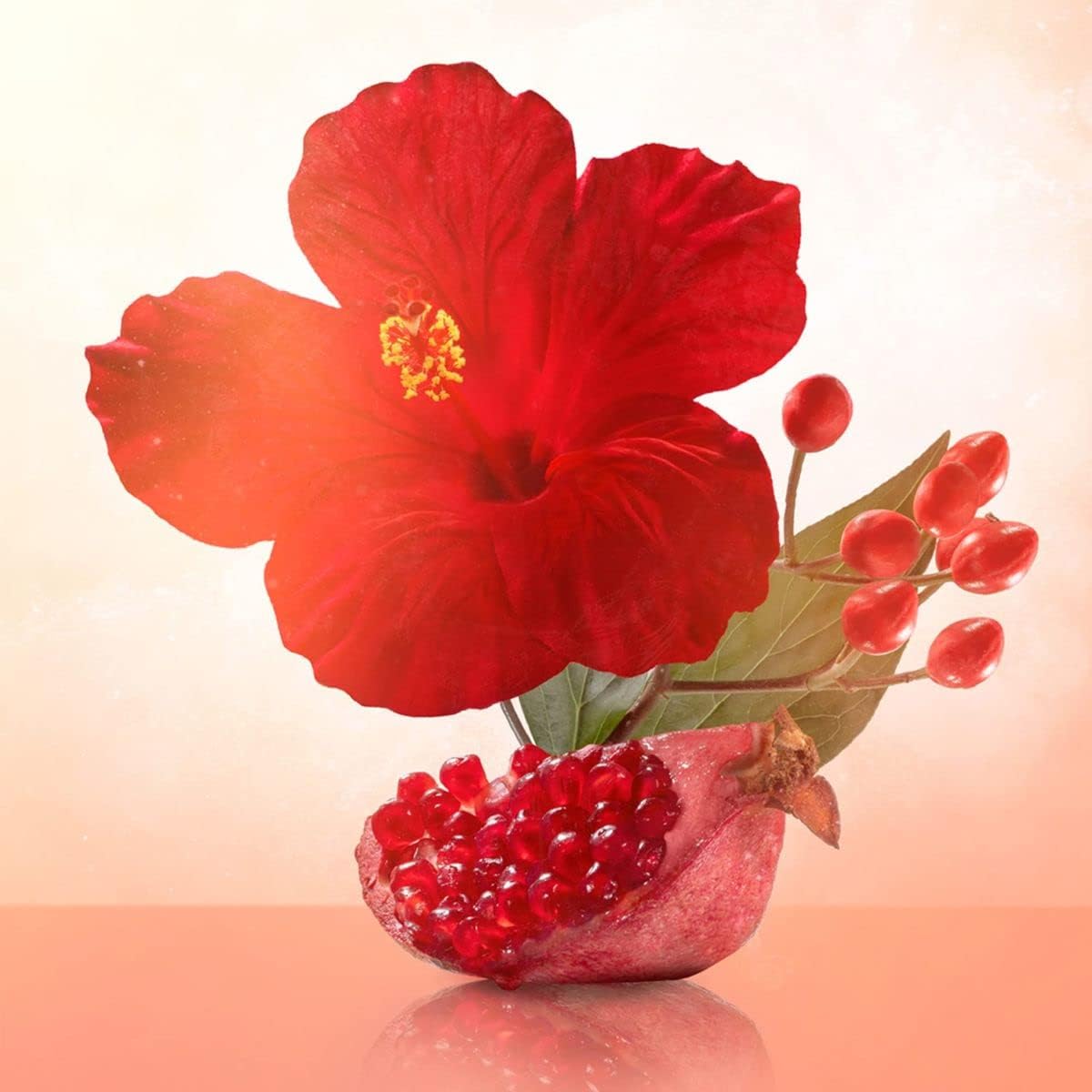 • رائحة مشرقة تتميز برائحة الكركديه والرمان وزنبق الماء