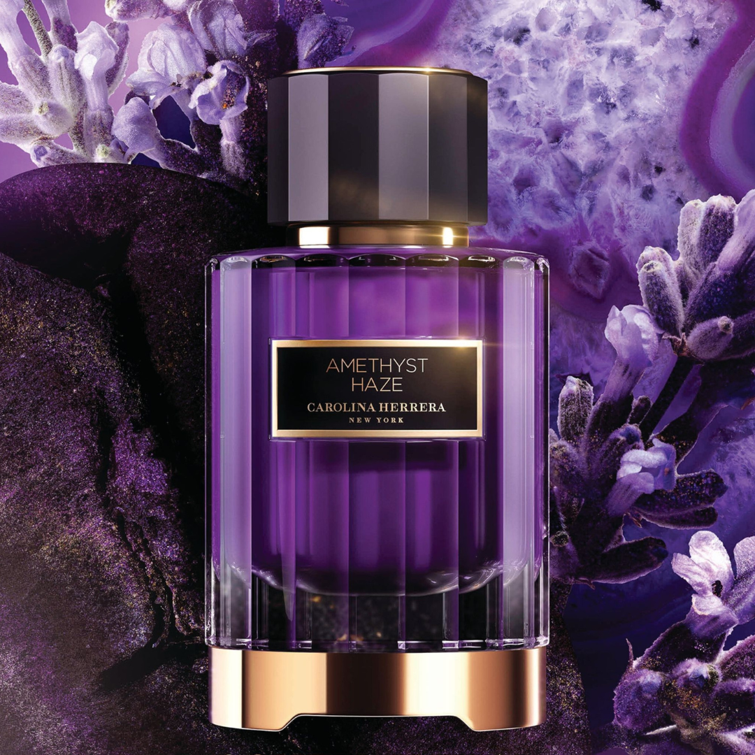 يتميز عطر Carolina Herrera Amethyst Haze EDP برائحة حمضية نابضة بالحياة مستوحاة من طاقة الكوارتز الجمشت.