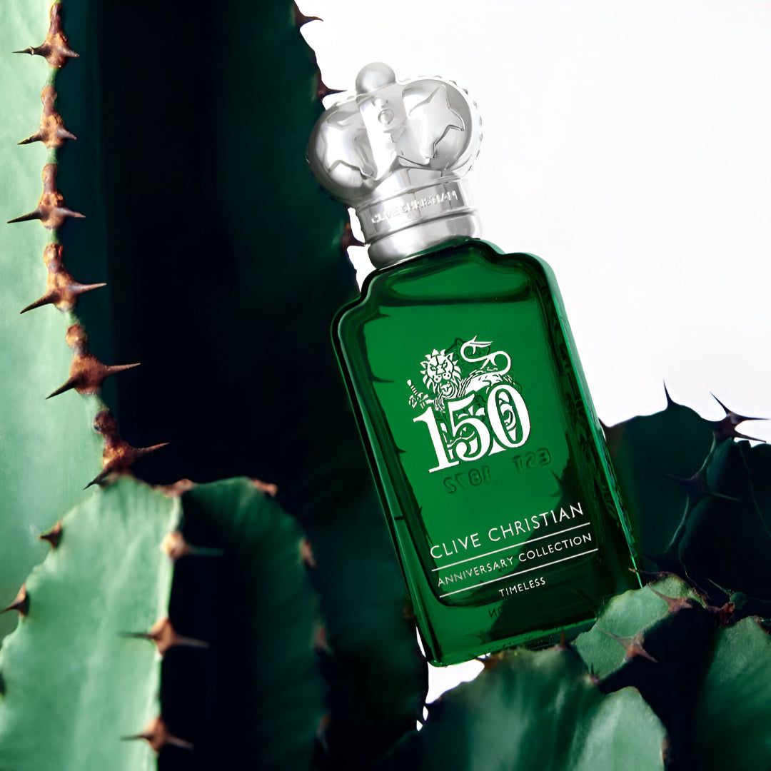 Clive Christian 150 Anniversary Collection Timeless Limited Edition Perfume smells fresh and zesty with notes of bitter orange, lime, and ginger, balanced by mint, lavender, and nutmeg, and rounded out with earthy vetiver and coriander.