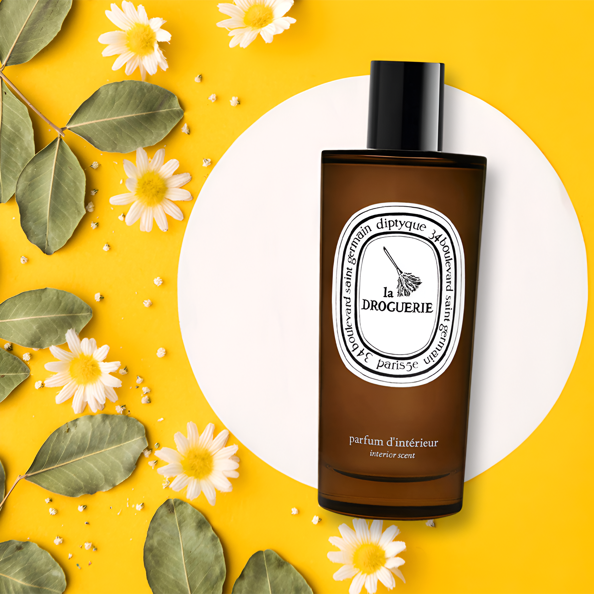 Diptyque La Droguerie Odor Removing Interior Scent Spray With Basil smells fresh and uplifting, like a vibrant vegetable garden filled with aromatic basil and green leaves.