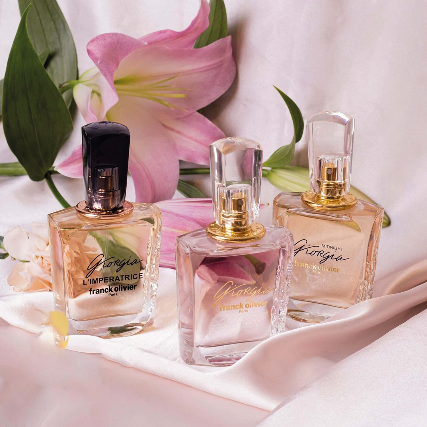 اكتشف السحر الساحر لعطر Giorgia Midnight EDP من Franck Olivier، وهو عطر يجسد جوهر الرومانسية في منتصف الليل.