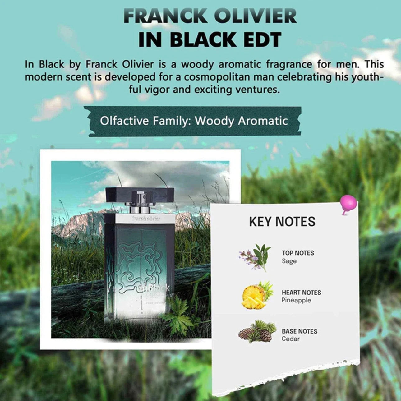 اكتشف عطر Franck Olivier In Black EDT، وهو عطر رجالي فريد من نوعه برائحة خشبية، تم إطلاقه في عام 2011 ليمنحك أناقة مميزة.