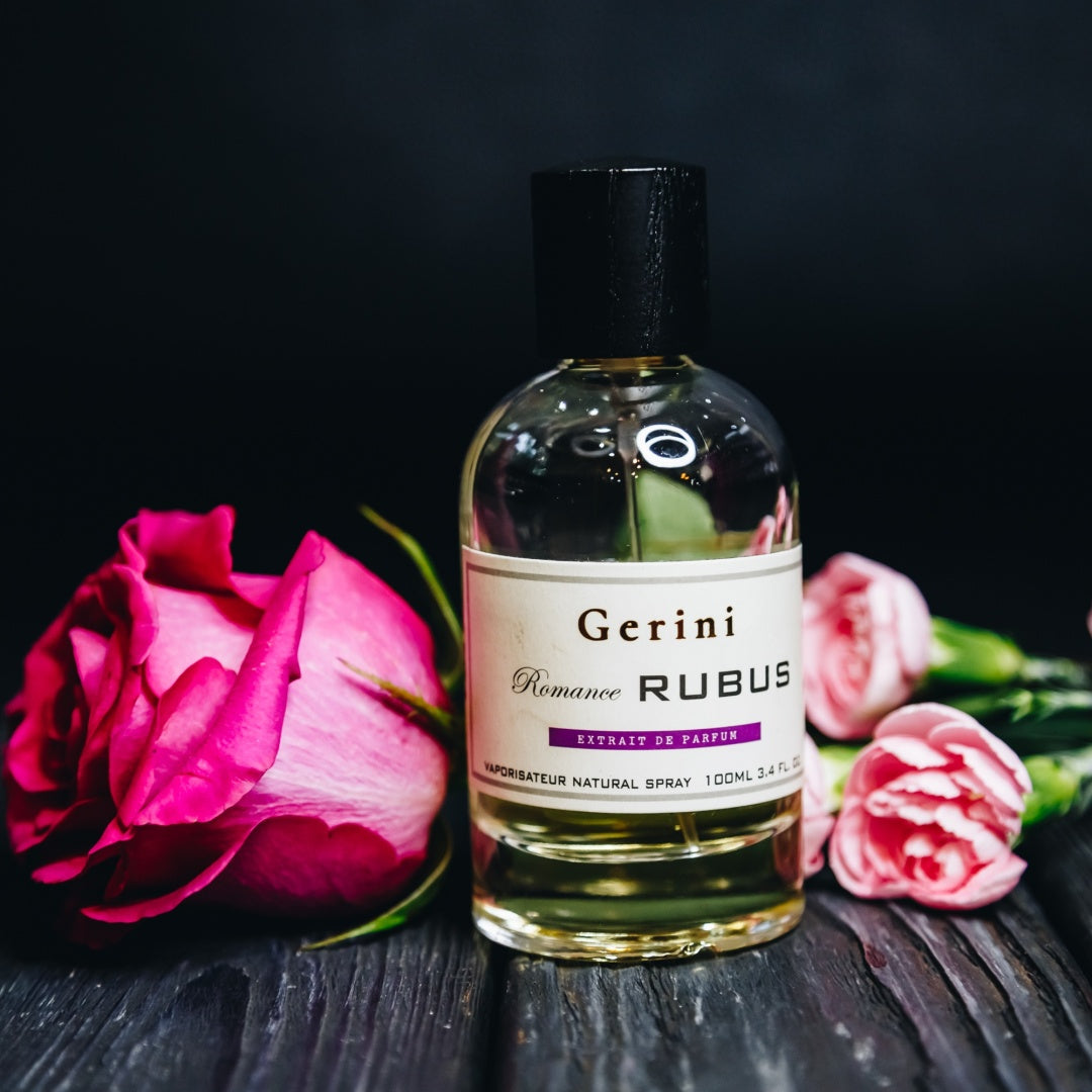 يتميز عطر Gerini Romance Rubus Extrait De Parfum برائحة مزيج فاخر من التوت الطازج والورود الرقيقة، مع تعزيزها بمكونات دافئة من الياسمين والتناغمات الفاكهية والفانيليا الحلوة، مما يخلق عطرًا زهريًا فاكهيًا جذابًا مثاليًا لأي مناسبة.