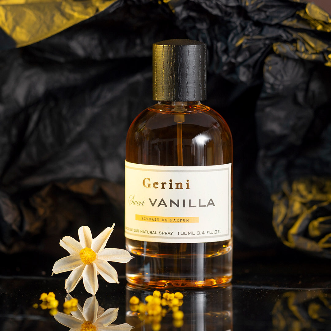 يتميز عطر Gerini Sweet Vanilla Extrait de Parfum برائحة مزيج دافئ وساحر من الفانيليا الحلوة والكراميل الغني والمكونات الزهرية الرقيقة، مما يثير مشاعر الحنين والرومانسية لكل من الرجال والنساء.