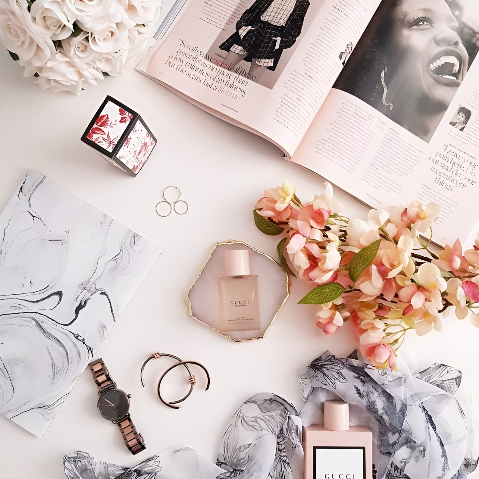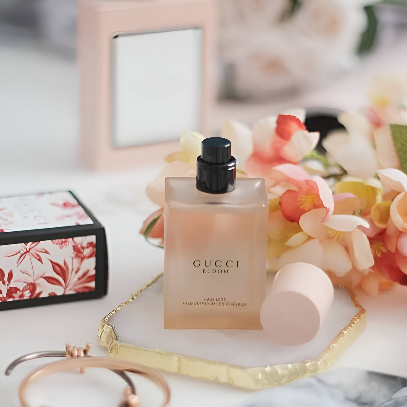 رذاذ خفيف للشعر برائحة Gucci Bloom المميزة، يحتفل بأصالة وحيوية المرأة مع نفحات مسك الروم الطبيعية.