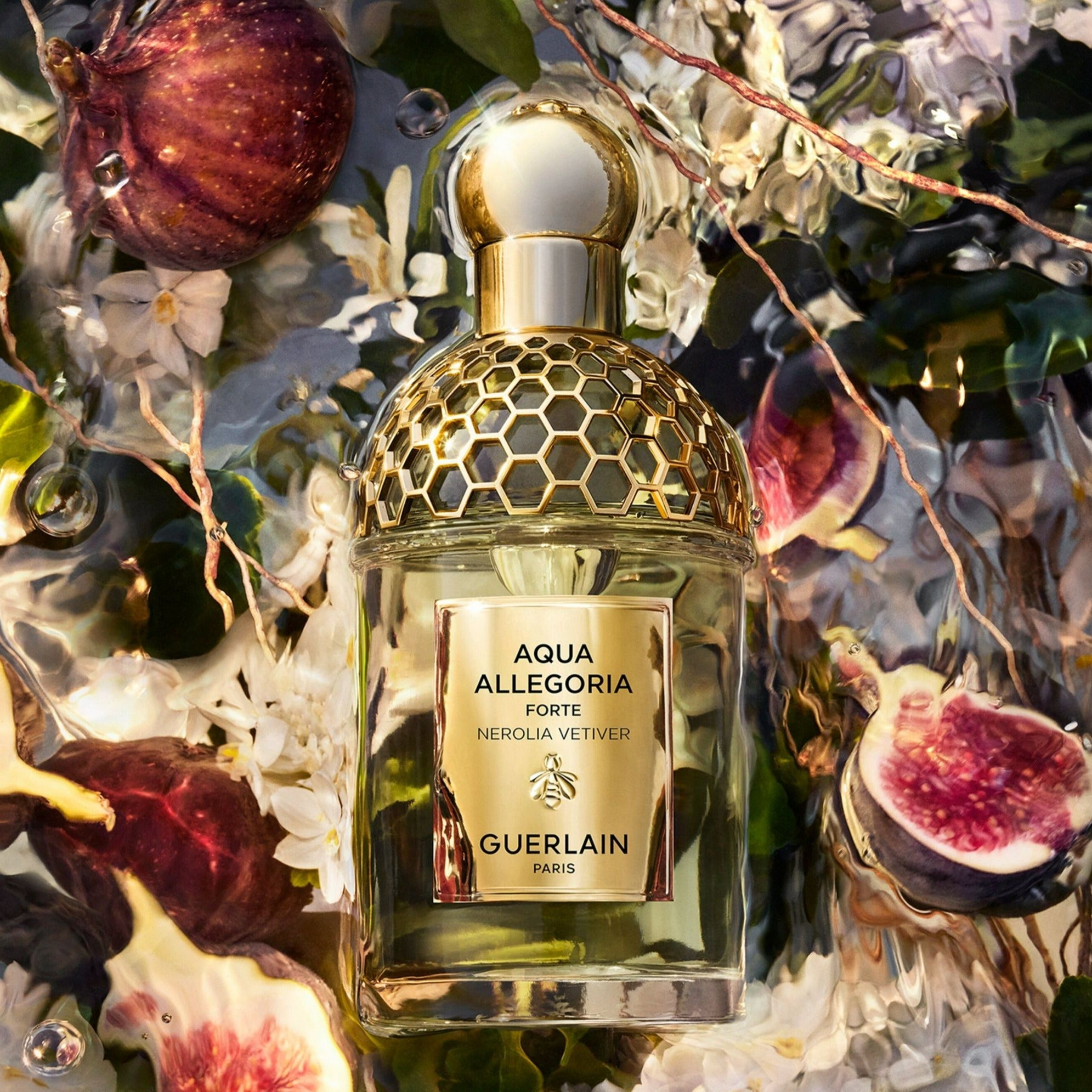 اكتشف جوهر ضوء الشمس الموجود في زجاجة مع عطر Guerlain Aqua Allegoria Forte Nerolia Vetiver Eau de Parfum.