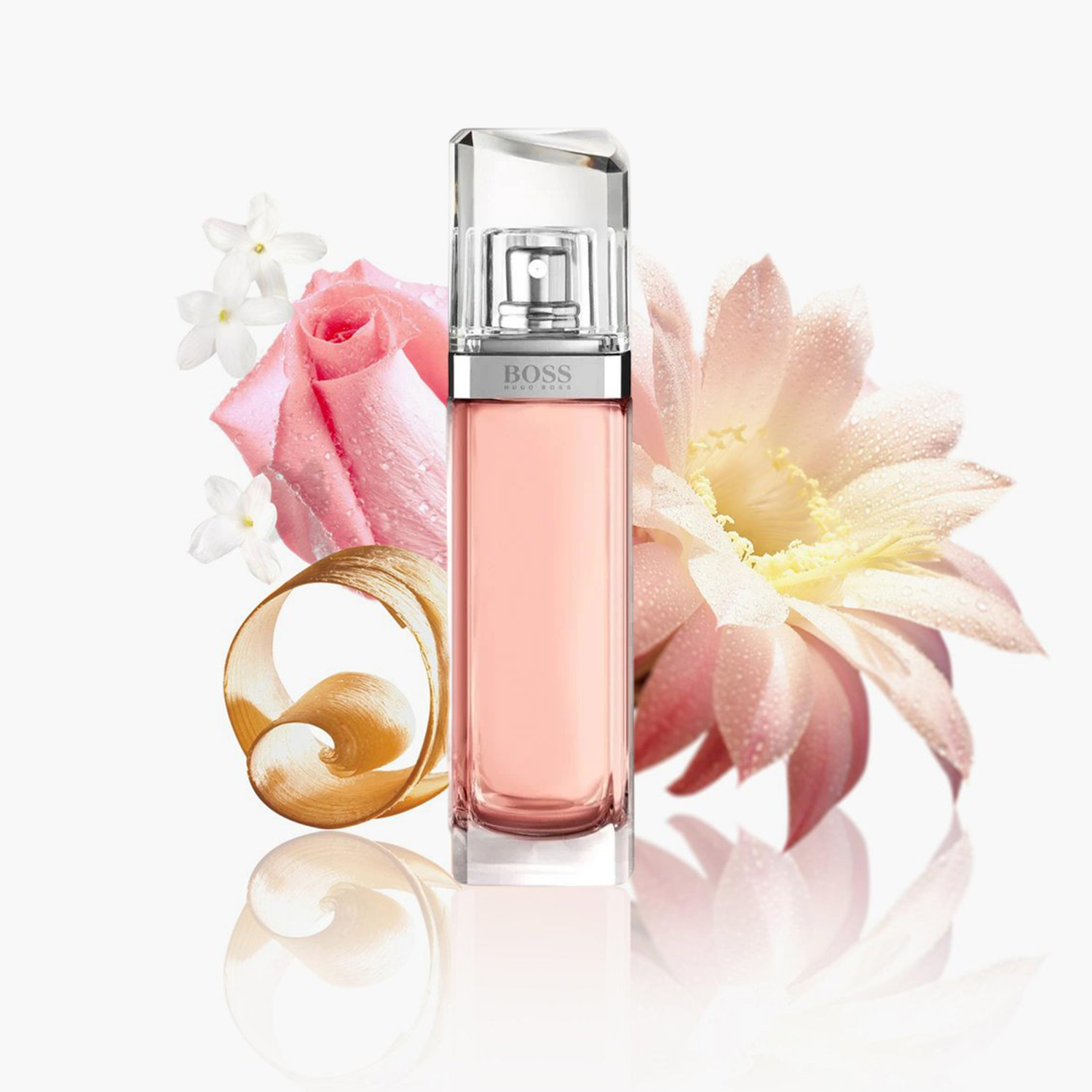 Hugo Boss Boss Ma Vie L'Eau EDT For Women smells like a fresh, green floral bouquet of cactus flower, peony, pink rose and magnolia anchored by warm cedar, evoking a comforting, modern garden-fresh scent.