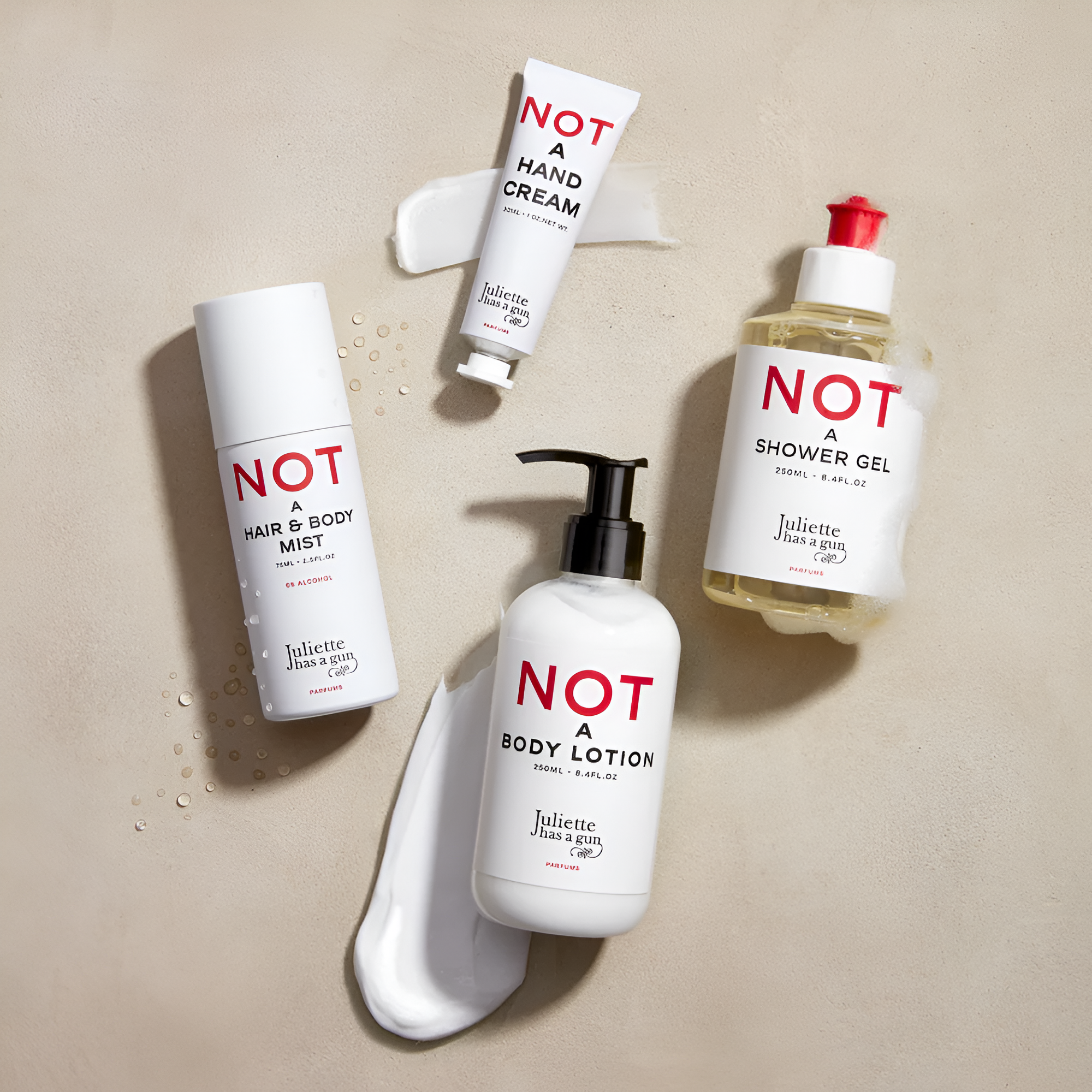 عطر "جولييت هاز أ غان" ليس لوشن للجسم برائحة عطر "نوت أ بيرفيوم" الأيقوني والنظيف. إنه عطر فاخر وبسيط يترك بشرتكِ معطرة برائحة ناعمة.