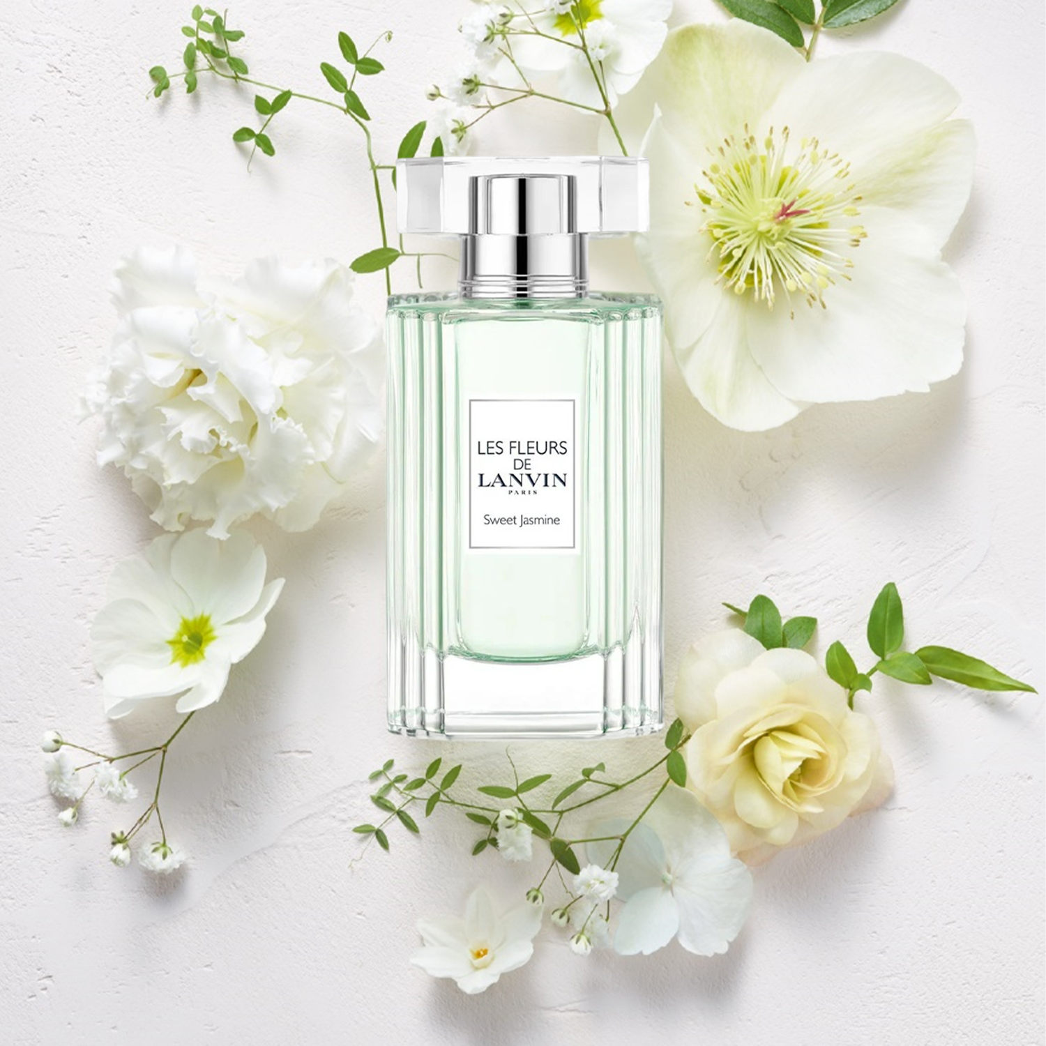 يتميز عطر Lanvin Les Fleurs De Sweet Jasmine EDT برائحة مزيج منعش ومبهج من الياسمين المزهر والزهور الرقيقة، مما يستحضر الجمال الهادئ للحديقة النابضة بالحياة.