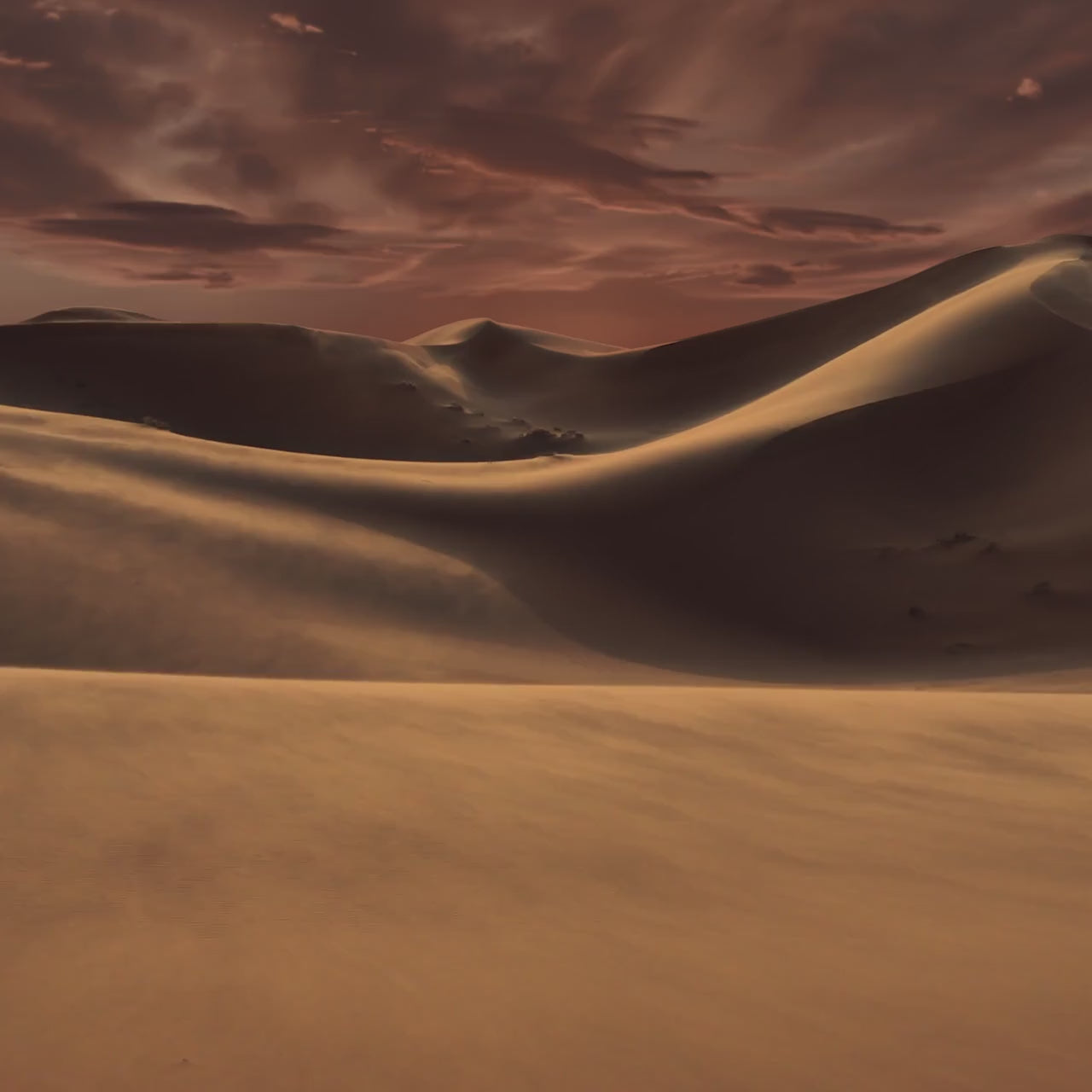 ومع مرور اليوم، يخلق مسار الشمس أنماطًا متلألئة من الظل والضوء على الكثبان الرملية.