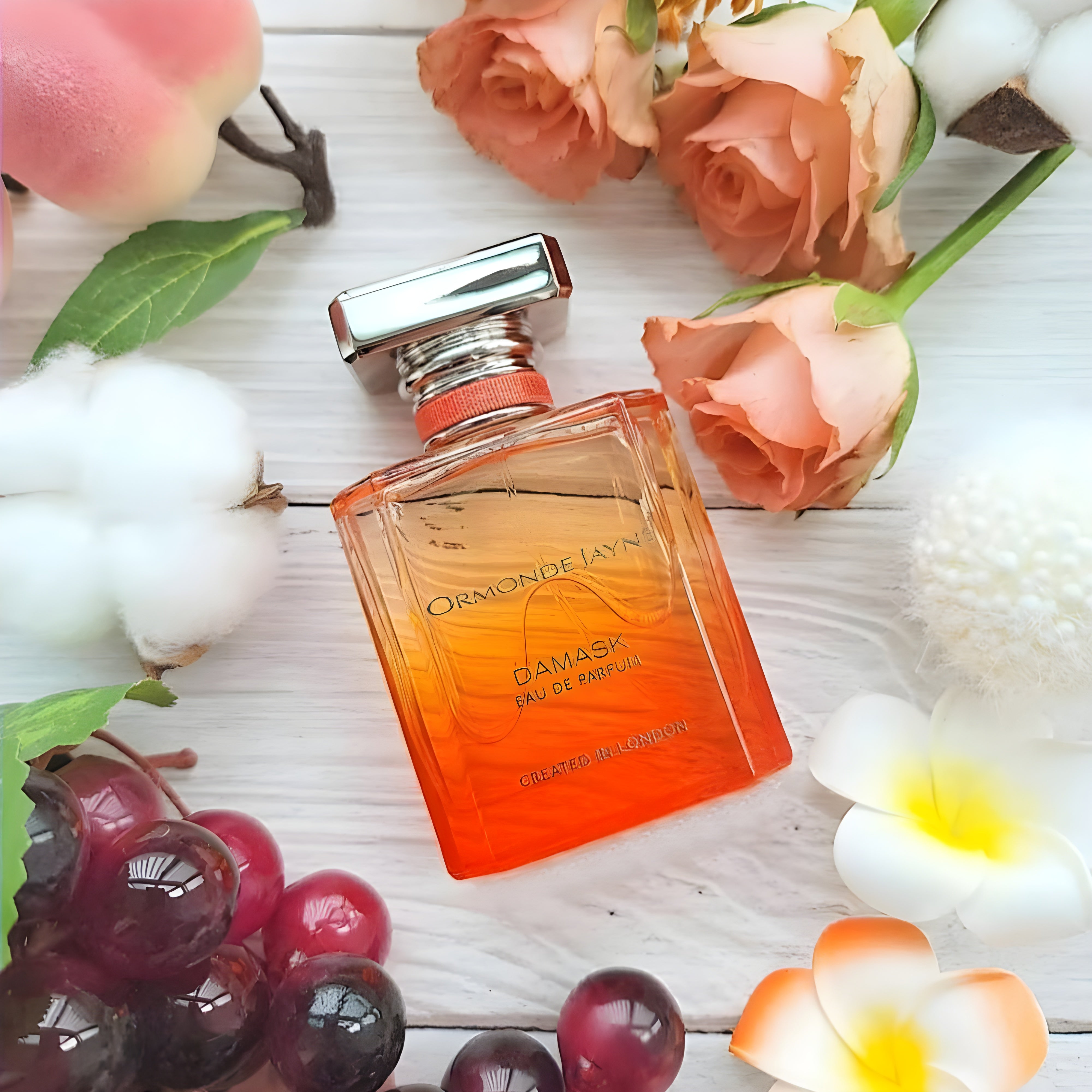 يتمتع عطر Ormonde Jayne Damask EDP برائحة مزيج من الورد والكشمش الأسود والكمثرى والليمون، مع رائحة زهرية فاخرة.