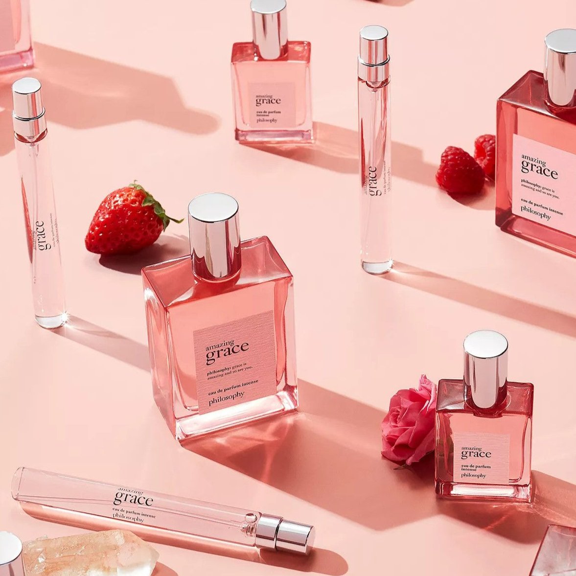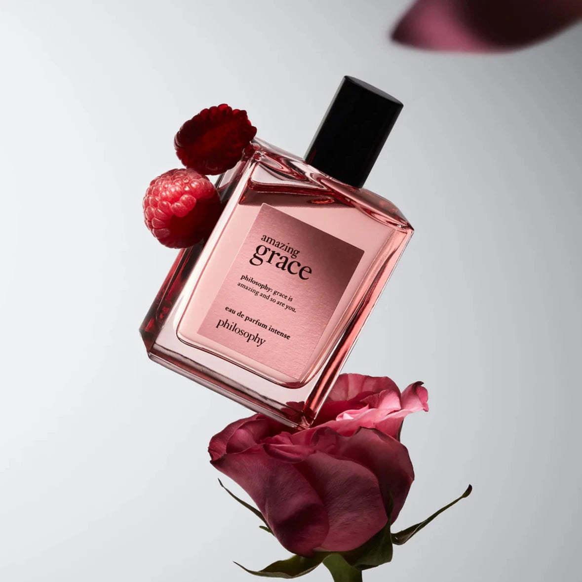 اكتشف عطر Philosophy Amazing Grace Eau de Parfum Intense: رائحة فاخرة تدوم طويلاً مع نفحات من اللون الوردي والتوت والورد المطلق والمسك.