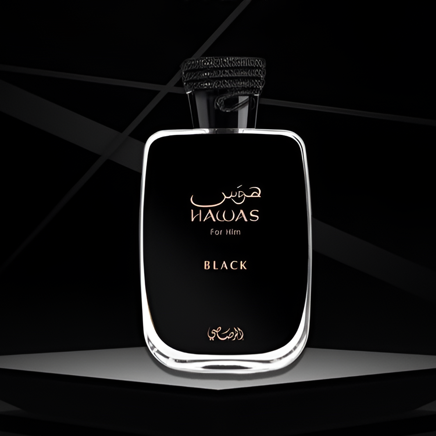 عطر راساسي حواس بلاك أو دو بارفان آسر، يجسّد جوهر الرقي والجاذبية. غنيّ بنفحات غنية، ويعِدُ بتجربة عطرية تنبض بالثقة والسحر.