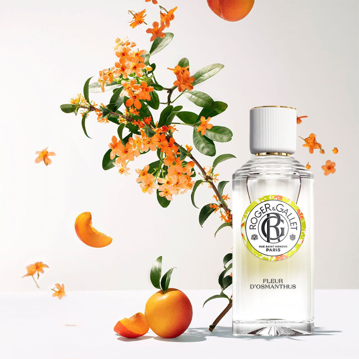 يتميز عطر Roger & Gallet Fleur D'Osmanthus Eau Parfumée برائحة مزيج مبهج من زهور الأوسمانثوس الحلوة واليوسفي الطازج والأزهار البيضاء الناعمة، مما يخلق عطرًا منعشًا ومبهجًا يستحضر سعادة ليالي البحر الأبيض المتوسط.
