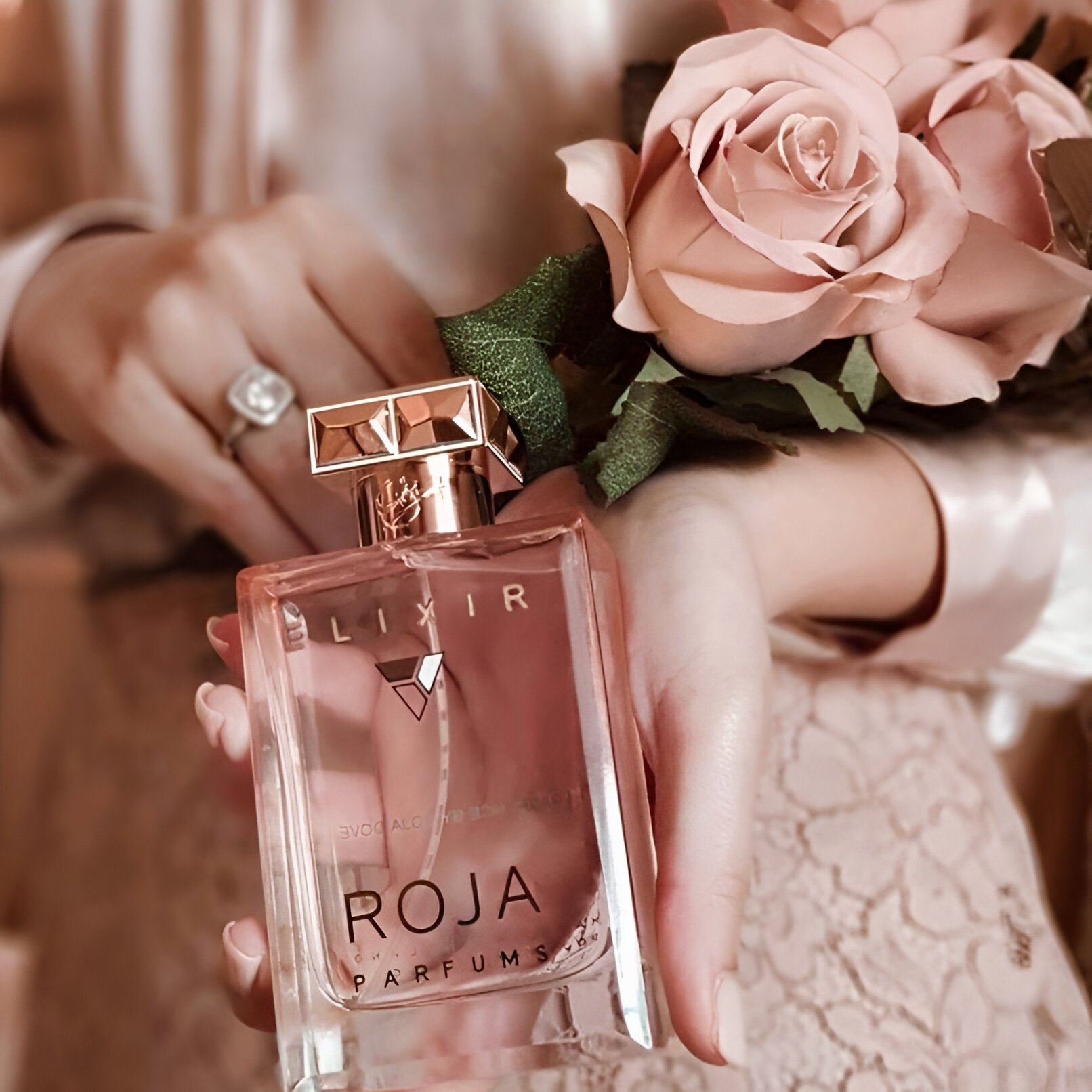 يتميز عطر Roja Elixir Pour Femme برائحة زهرية حلوة مع نفحات من الورد والتوت والخوخ، مع لمسات من البنفسج والزهور الرقيقة الأخرى.