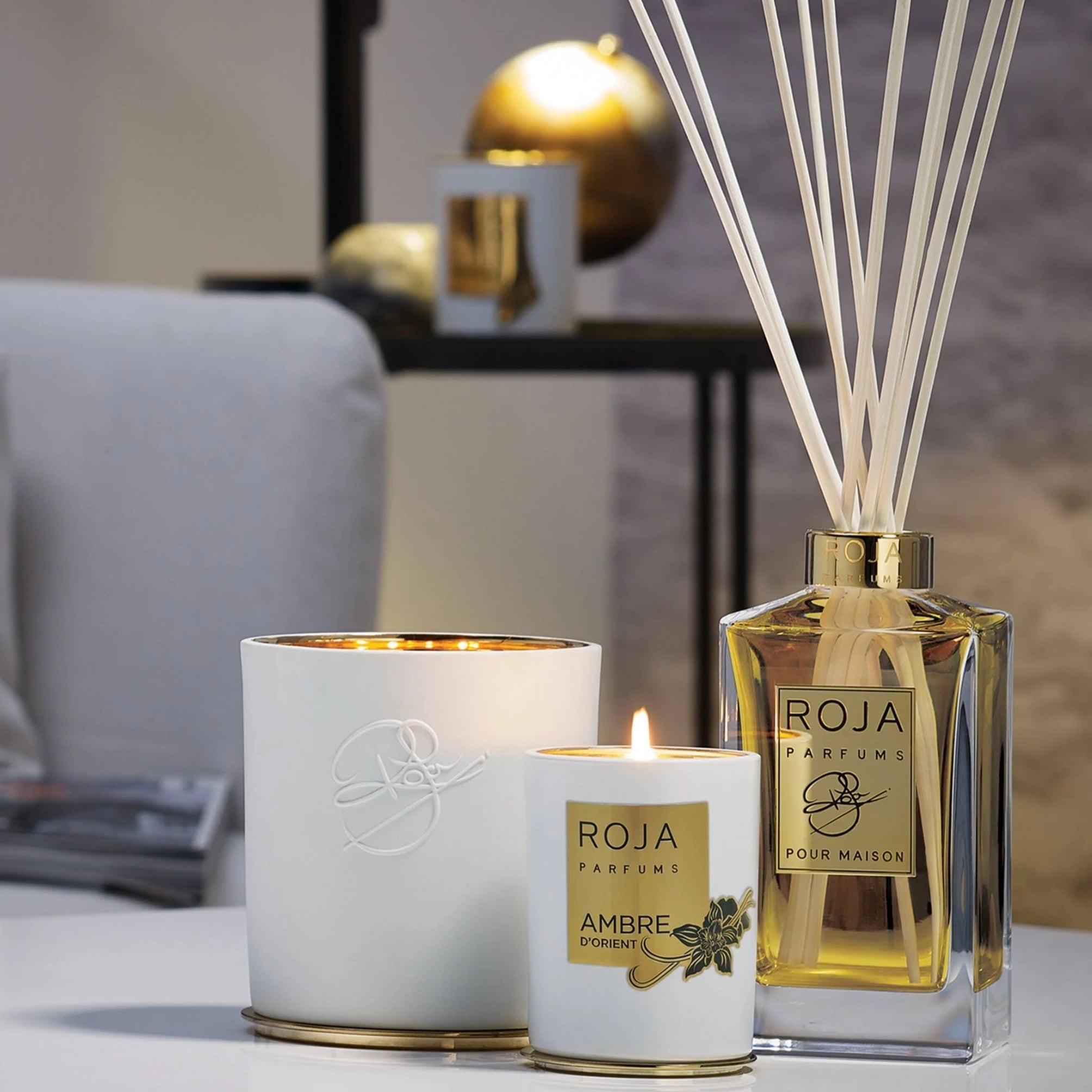 يتميز معطر جو Roja Parfums Ambre D'Orient برائحة مزيج فاخر من الباتشولي والفريزا والعنبر الدافئ والفانيليا الحلوة، مما يخلق جوًا جذابًا وأنيقًا يذكرنا بالشرق الساحر.