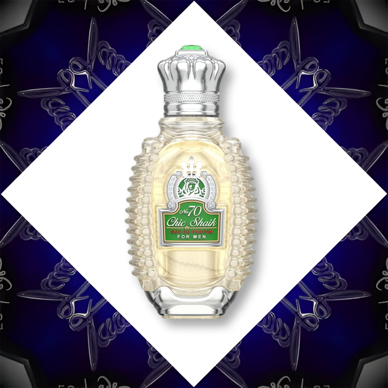 عطر شيك شيخ إميرالد رقم 70 للرجال، أو دو برفيوم، تجسيد فاخر لشغف أمير الصحراء. يقدم هذا العطر الاستثنائي تجربة رقيقة وساحرة تأسر الحواس.