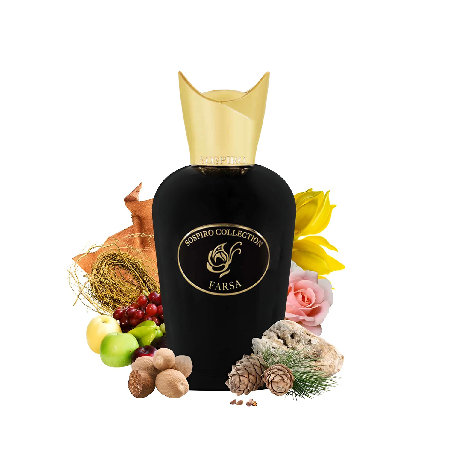 Sospiro Farsa EDP smells like a playful, rich woody-amber perfume that opens bright with pink pepper, saffron and rum, moves into warm cocoa and geranium, and settles into a deep, slightly leathery base of cedar, patchouli, oud and ambergris.
