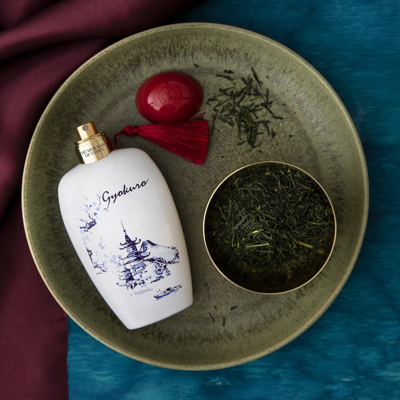اكتشف عطر The Merchant of Venice Gyokuro EDP: مزيج فاخر من أناقة البندقية وطقوس الشاي الآسيوي، ملفوفًا بمكونات من البرتقال والمريمية ونجيل الهند.