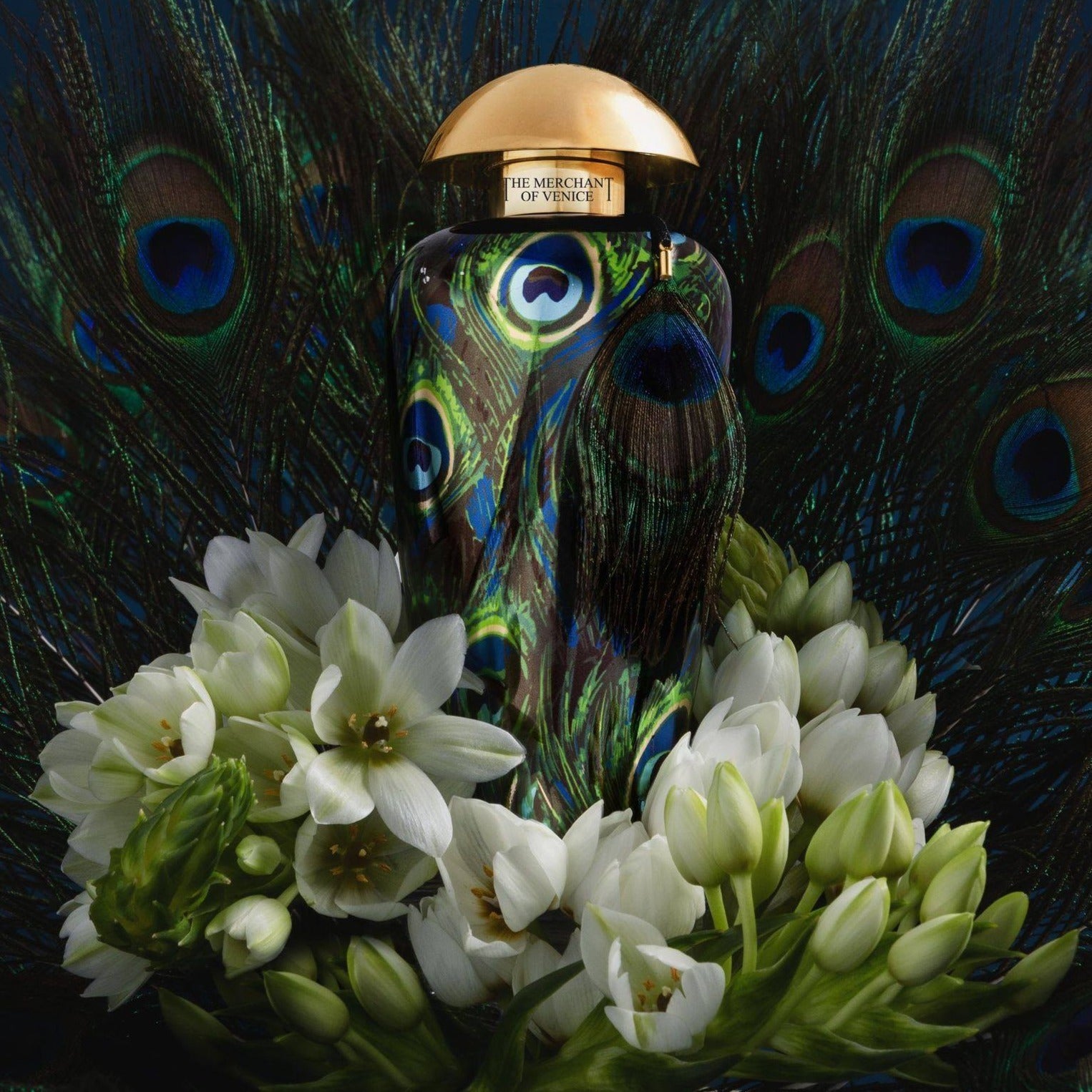 اكشف عن جوهر الجلالة والجمال مع عطر The Merchant Of Venice Imperial Emerald EDP Concentrée، وهو بمثابة تكريم للطاووس الساحر.