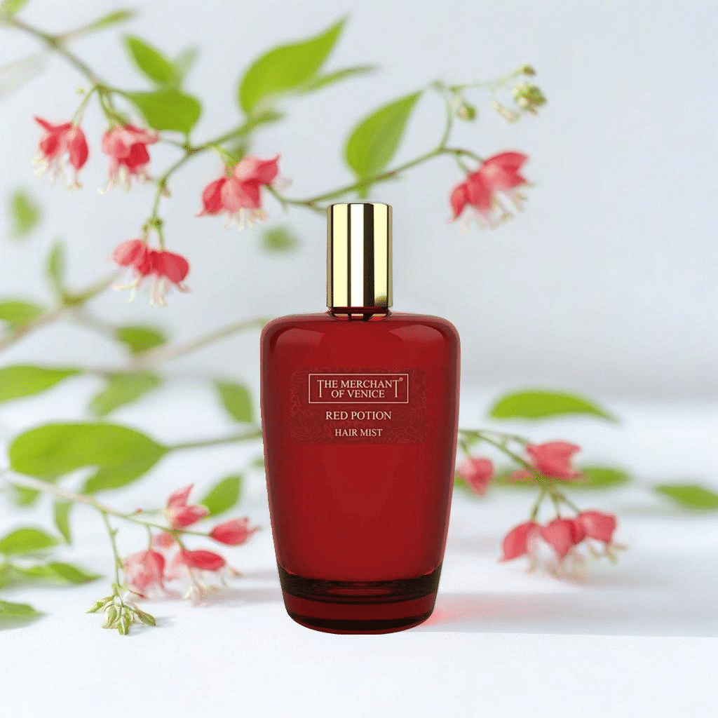 أغلفي شعرك بالسحر المغري الذي يقدمه لك عطر The Merchant Of Venice Red Potion Parfum Hair Mist، وهو عطر يعدك بالأناقة والنبلاء.