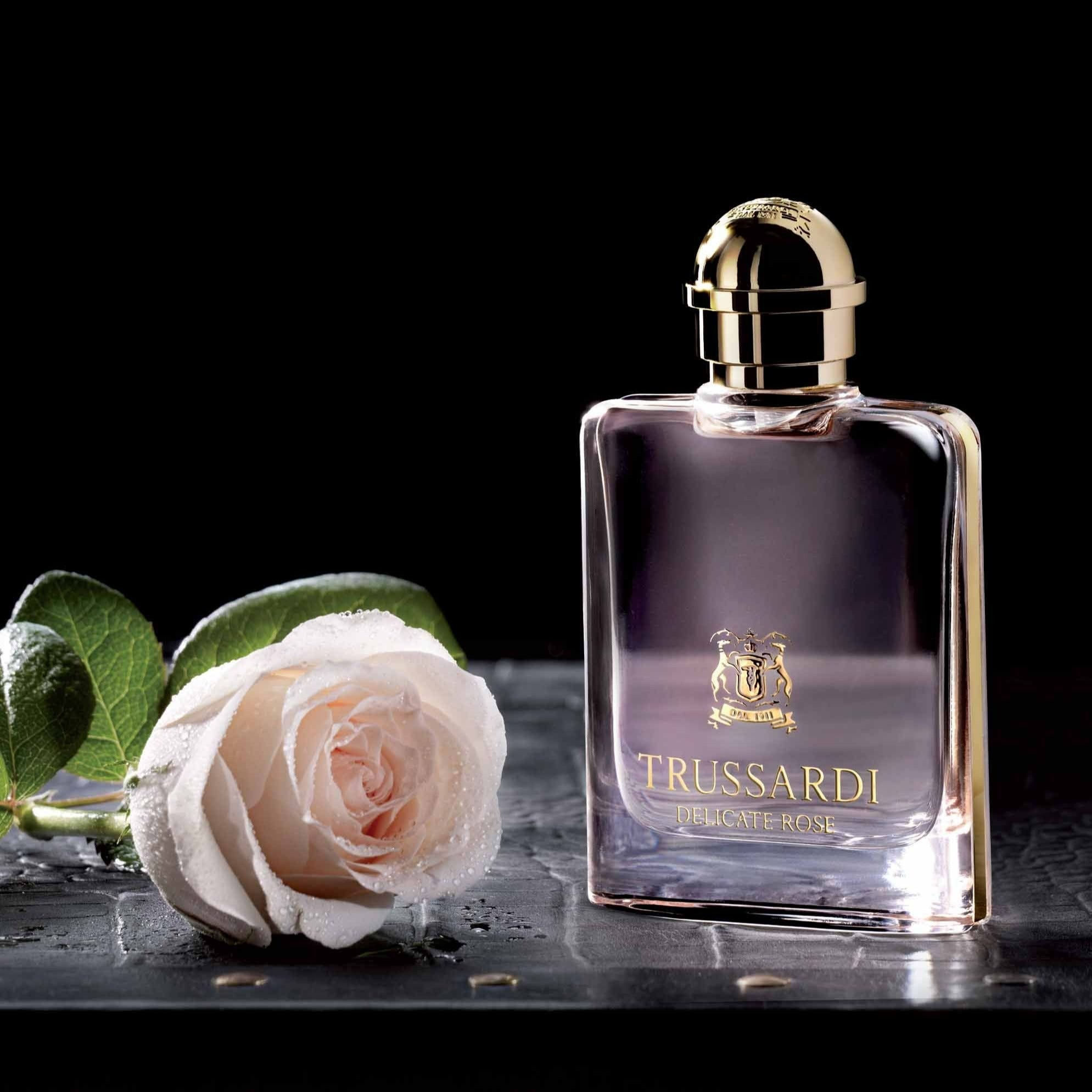 يتميز عطر Trussardi Delicate Rose EDT برائحة مزيج جذاب من الفواكه الطازجة والزهور الرقيقة واللمسات الخشبية الدافئة التي تنضح بالأناقة والأنوثة.