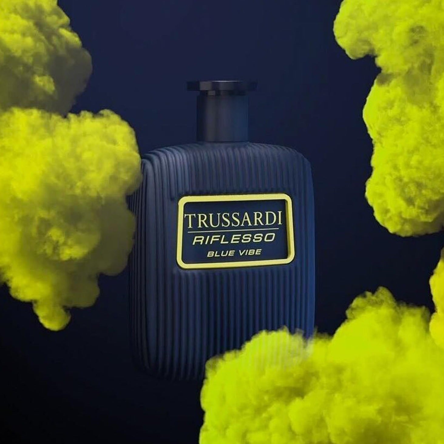 يتميز عطر Trussardi Riflesso Blue Vibe برائحة مزيج من المكونات الدافئة والباردة مع ملاحظة سرية غامضة، تذكرنا بغروب الشمس في منطقة البحر الكاريبي، وتوازن بين الأناقة والتمرد.