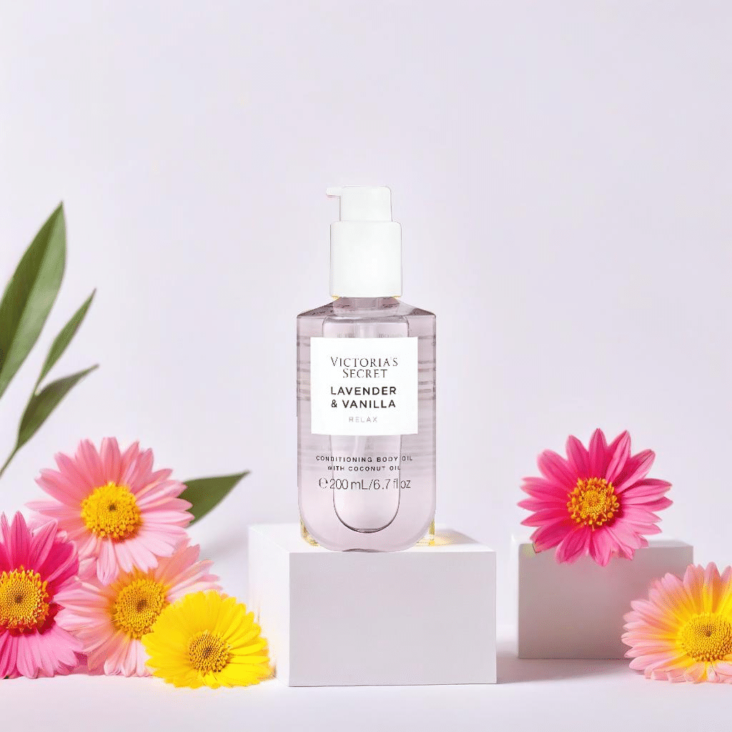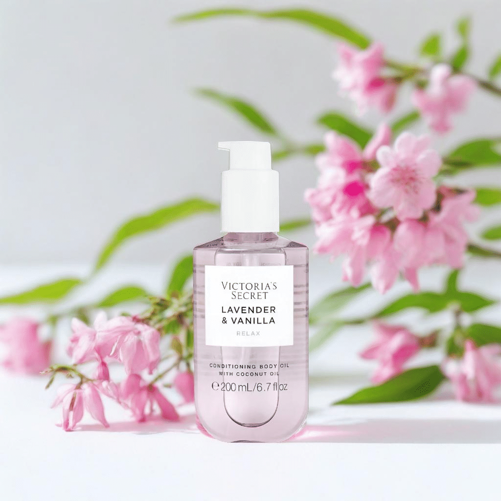 انغمس في النعيم الهادئ الذي يوفره زيت الجسم المرطب برائحة اللافندر والفانيليا من فيكتوريا سيكريت.