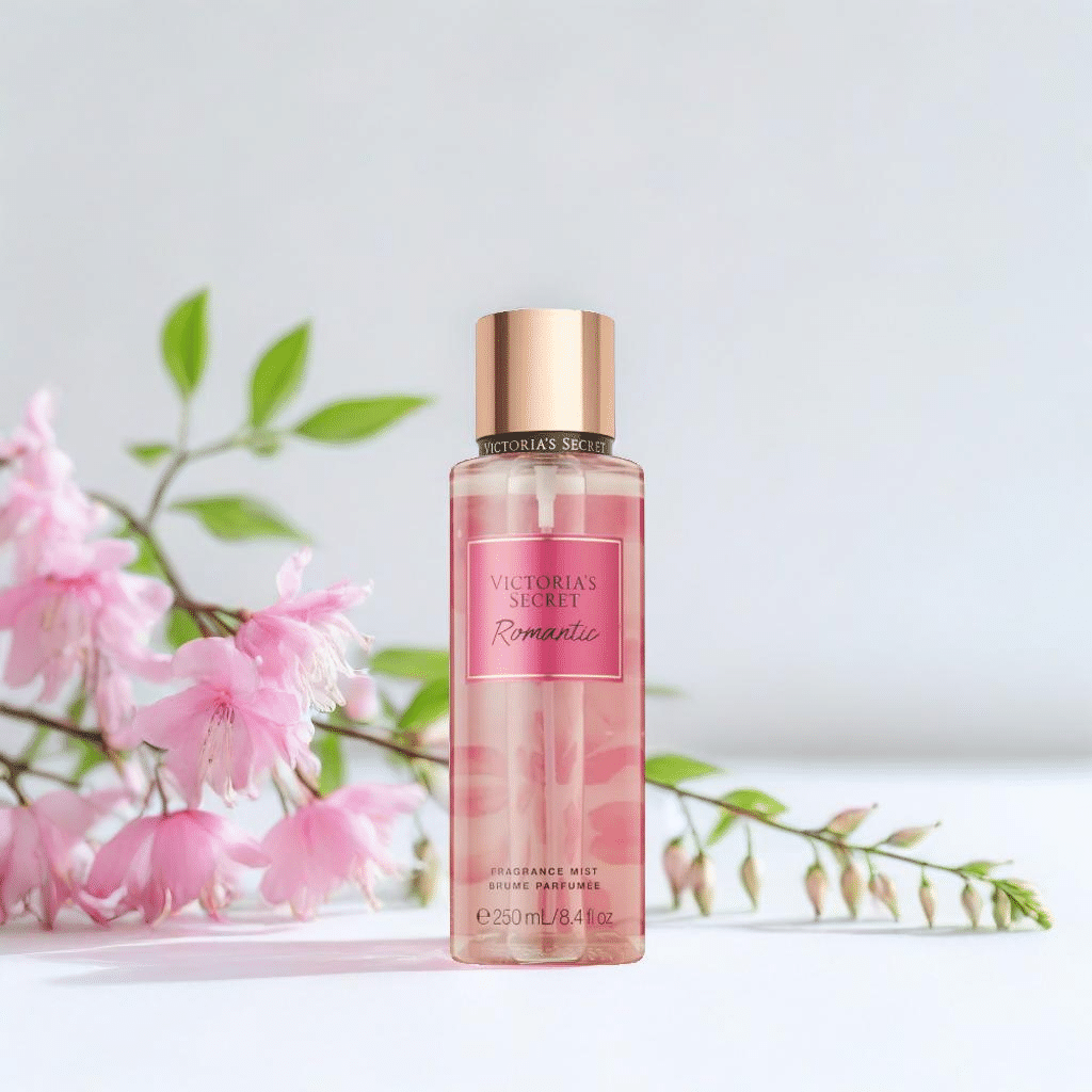 يتميز عطر Victoria's Secret Romantic Fragrance Mist برائحة مزيج ناعم من بتلات الورد والمسك الشمسي الدافئ، مما يستحضر حديقة زهرية هادئة مغمورة بأشعة الشمس.