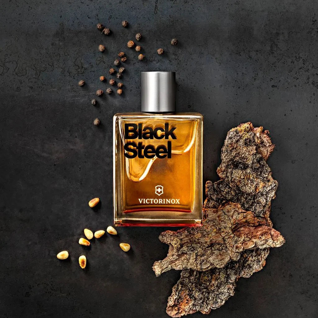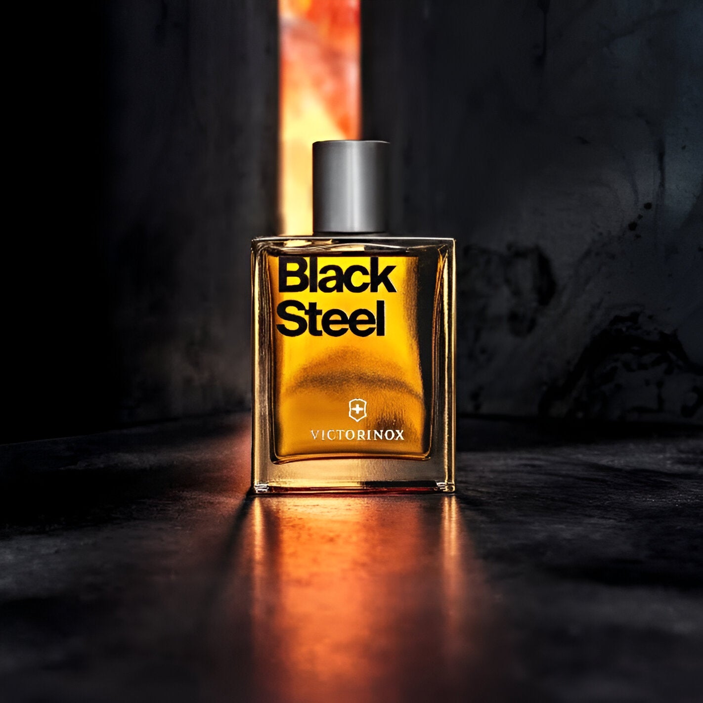 عطر فيكتورينوكس سويس آرمي بلاك ستيل أو دو تواليت هو تجسيدٌ للإغراء والقوة. مستوحى من براعة الفولاذ الذائب في بريق العنبر، يأسر هذا العطر الدفء والحيوية.