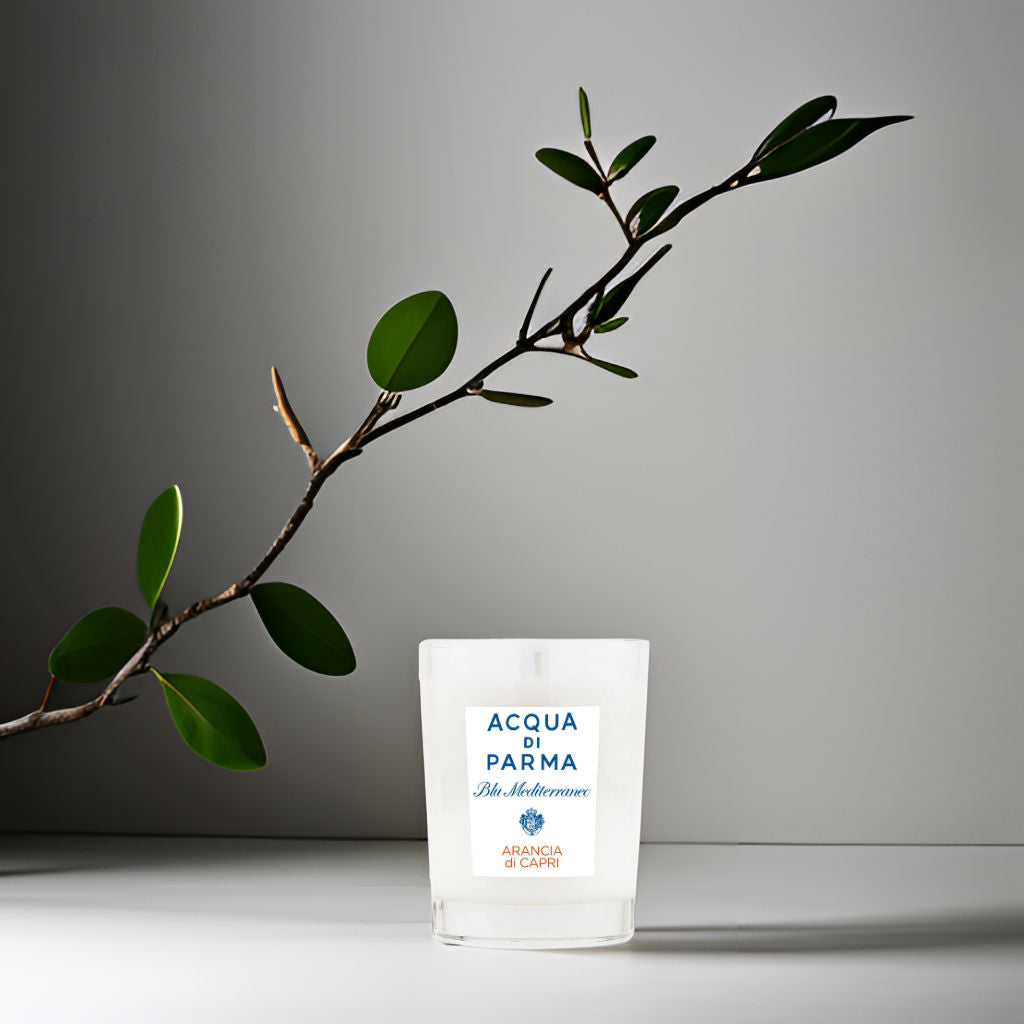 The Acqua Di Parma Blu Mediterraneo Arancia Di Capri Candle fills your room with a fresh citrus blend, reminiscent of the sunny charm of Capri's oranges and herbs.