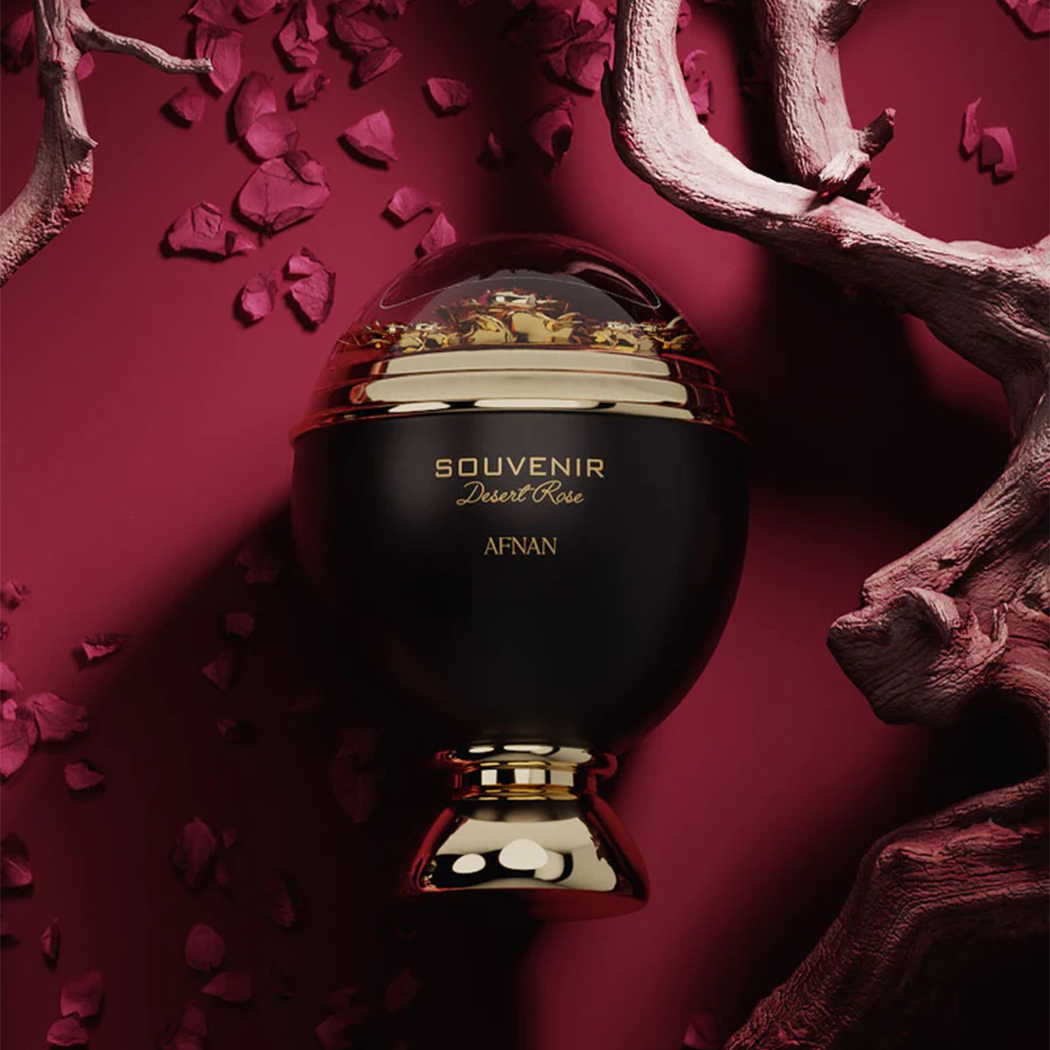 Experience the allure of the desert with Afnan Souvenir Desert Rose EDP, a tribute to feminine elegance.