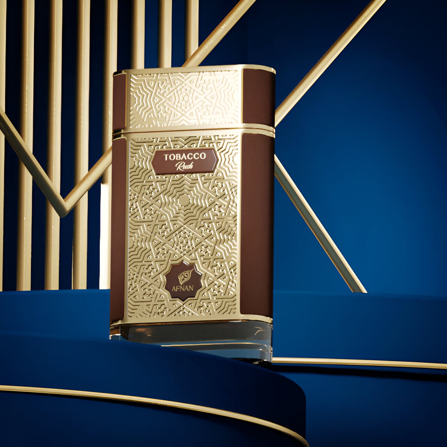 Afnan Tobacco Rush EDP has a rich tobacco scent with spicy undertones and a leather nuance, reminiscent of Arabian luxury.