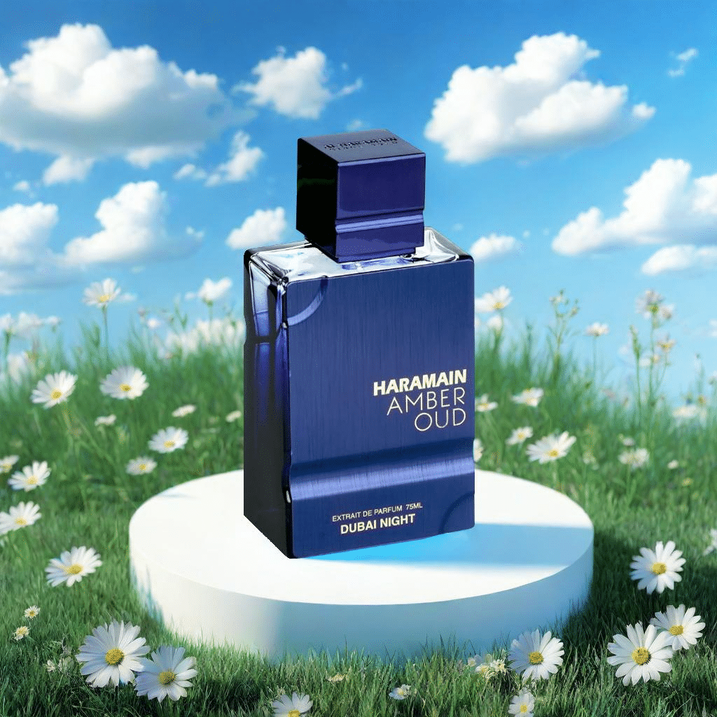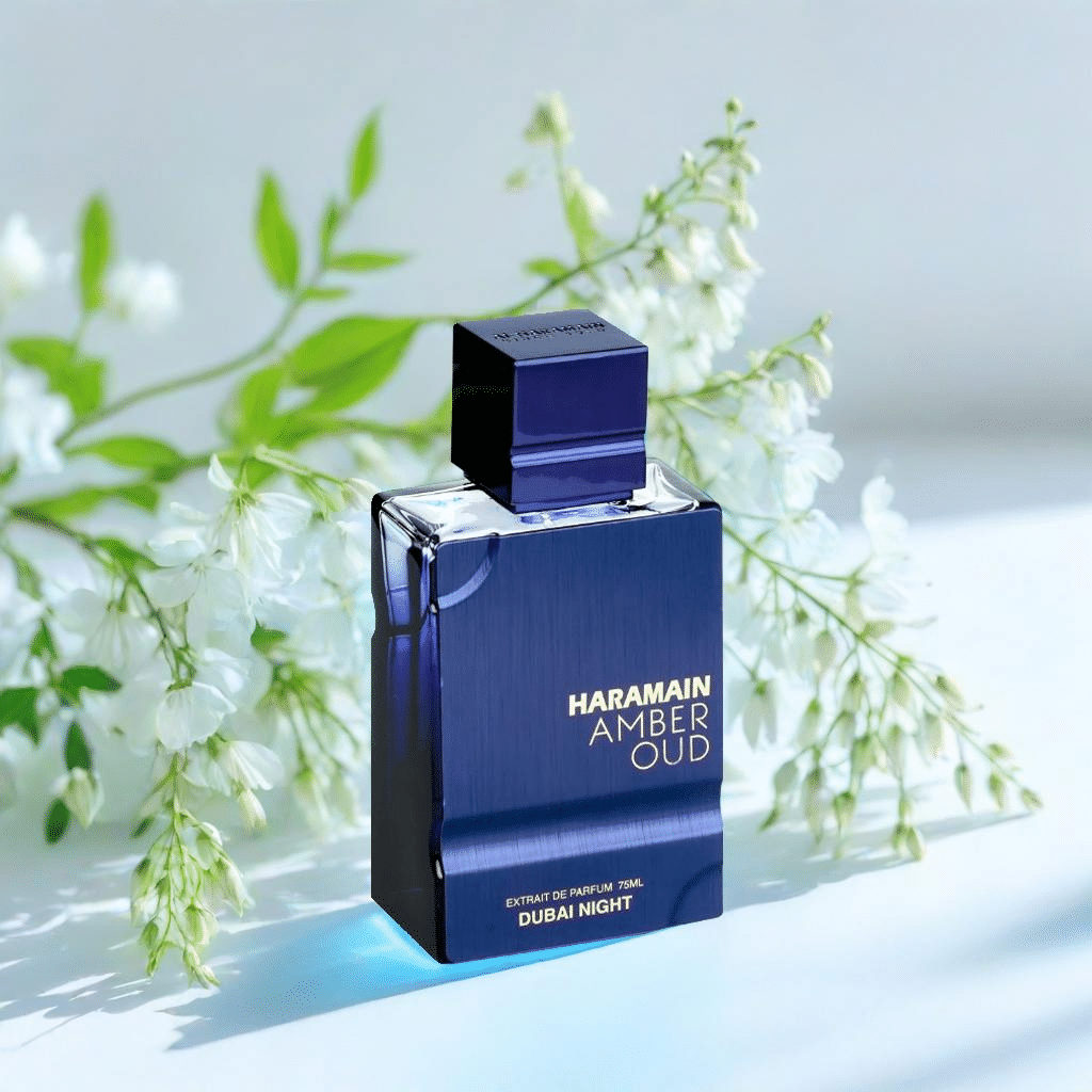 Experience the essence of Dubai nights with Al Haramain Amber Oud Dubai Night Extrait De Parfum.