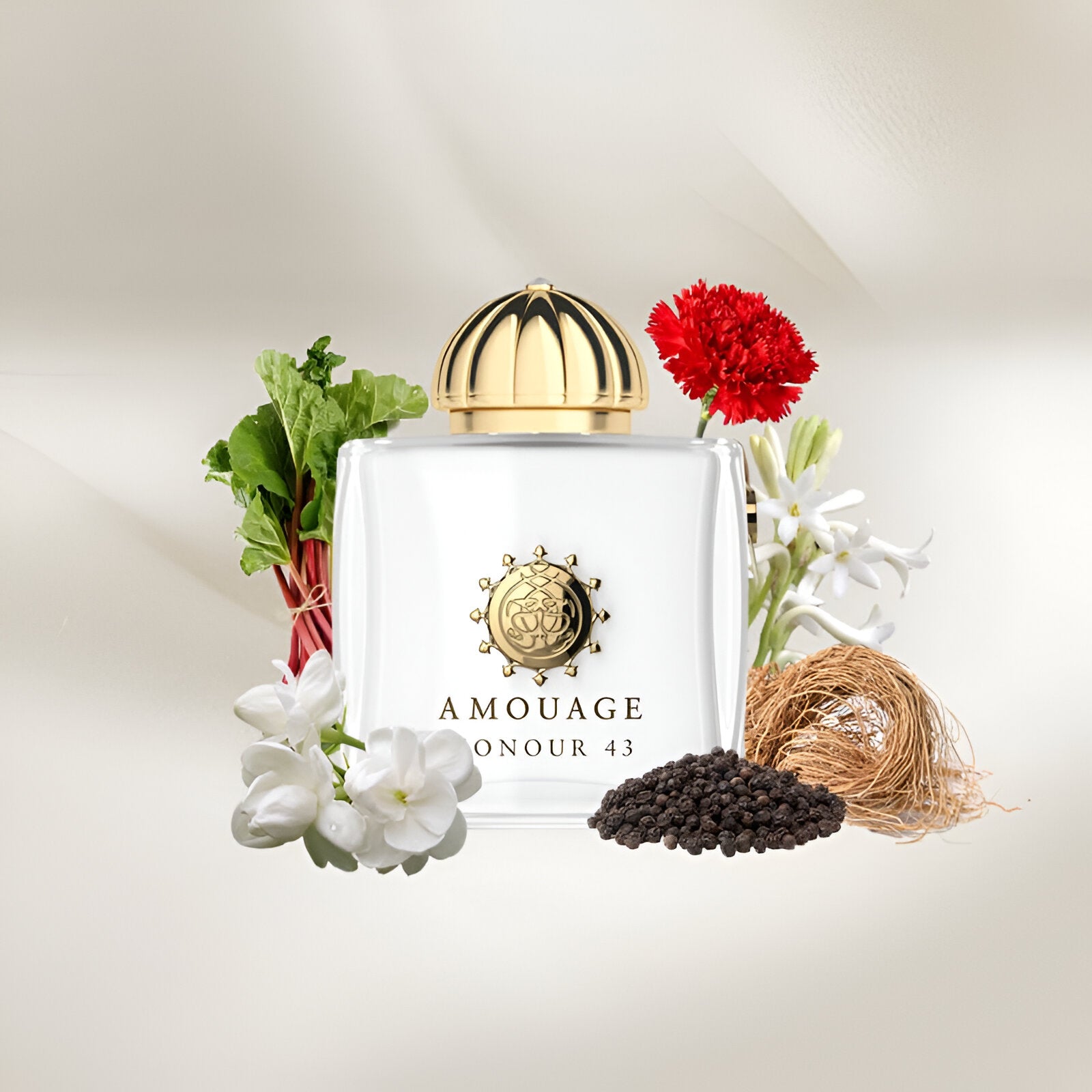 Amouage Honour 43 Woman encapsulates the dramatic essence of love and betrayal through its intense, floral composition. This Extrait De Parfum, with its high perfume oil concentration, promises an unforgettable sillage that celebrates the art of fine perfumery.