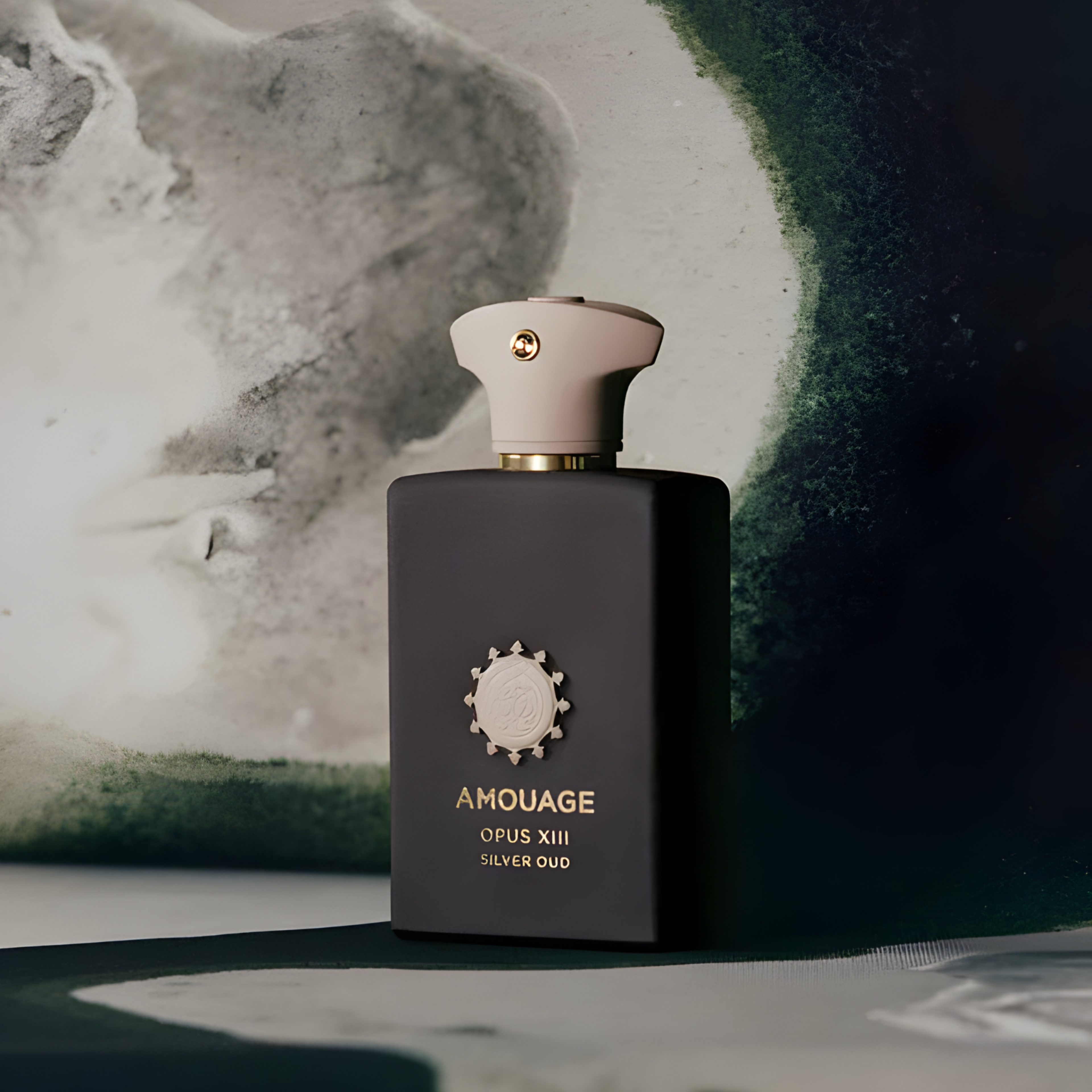 Dive into the Amber Woody depths of Amouage's Opus XIII – Silver Oud, a fragrant reflection of passion and tumult.