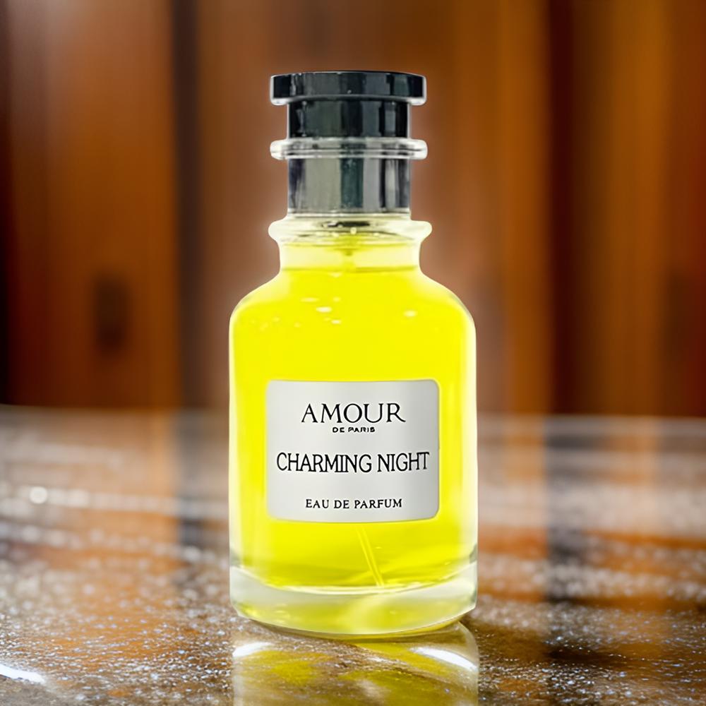 Amour De Paris Charming Night EDP smells like a captivating blend of romantic florals and warm amber, evoking the elegance and allure of a magical Parisian evening.
