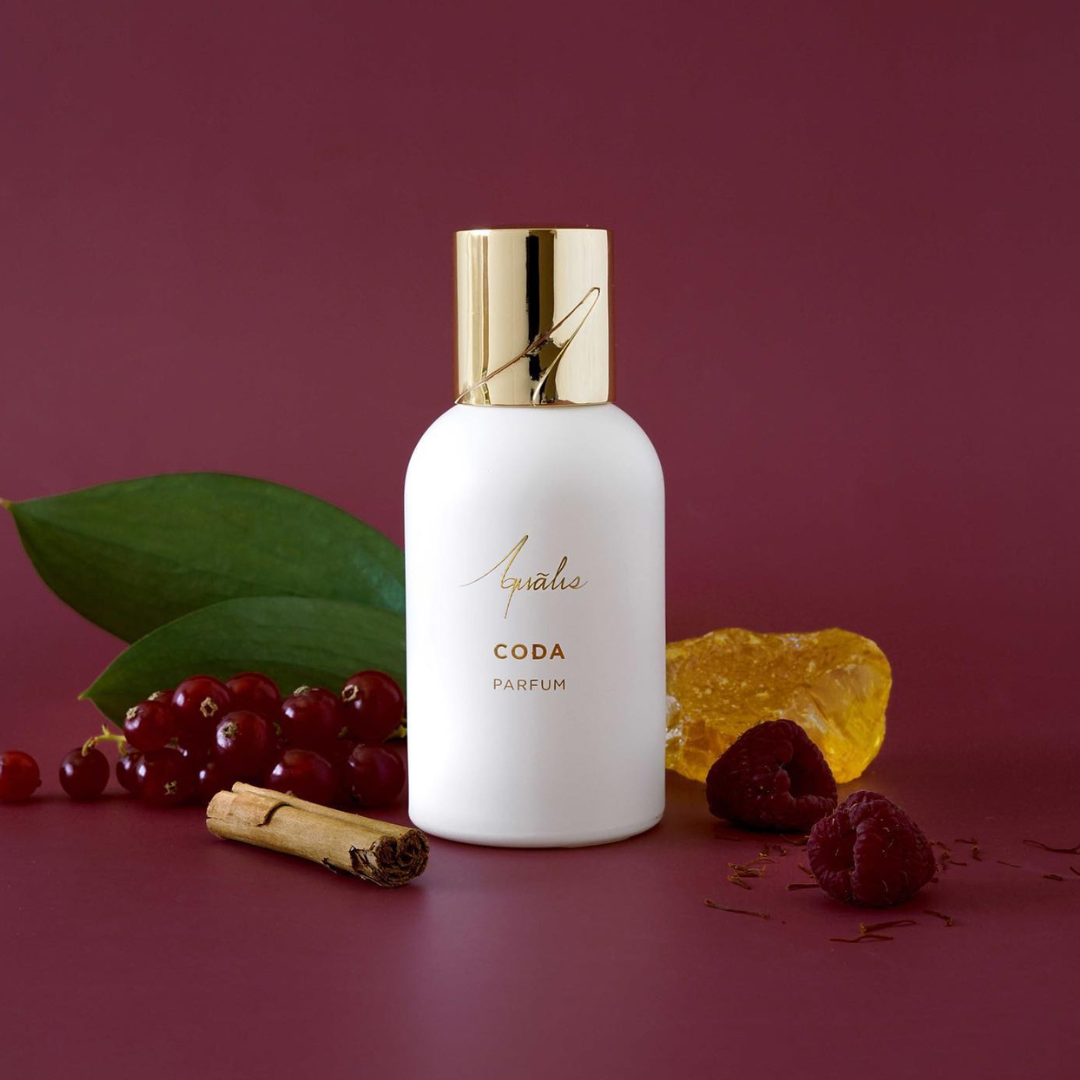 Aqualis Coda Parfum smells like sensual resins, exquisite florals, and a rich blend of Cambodian, Laotian, and Thai oud, creating a complex and memorable scent.