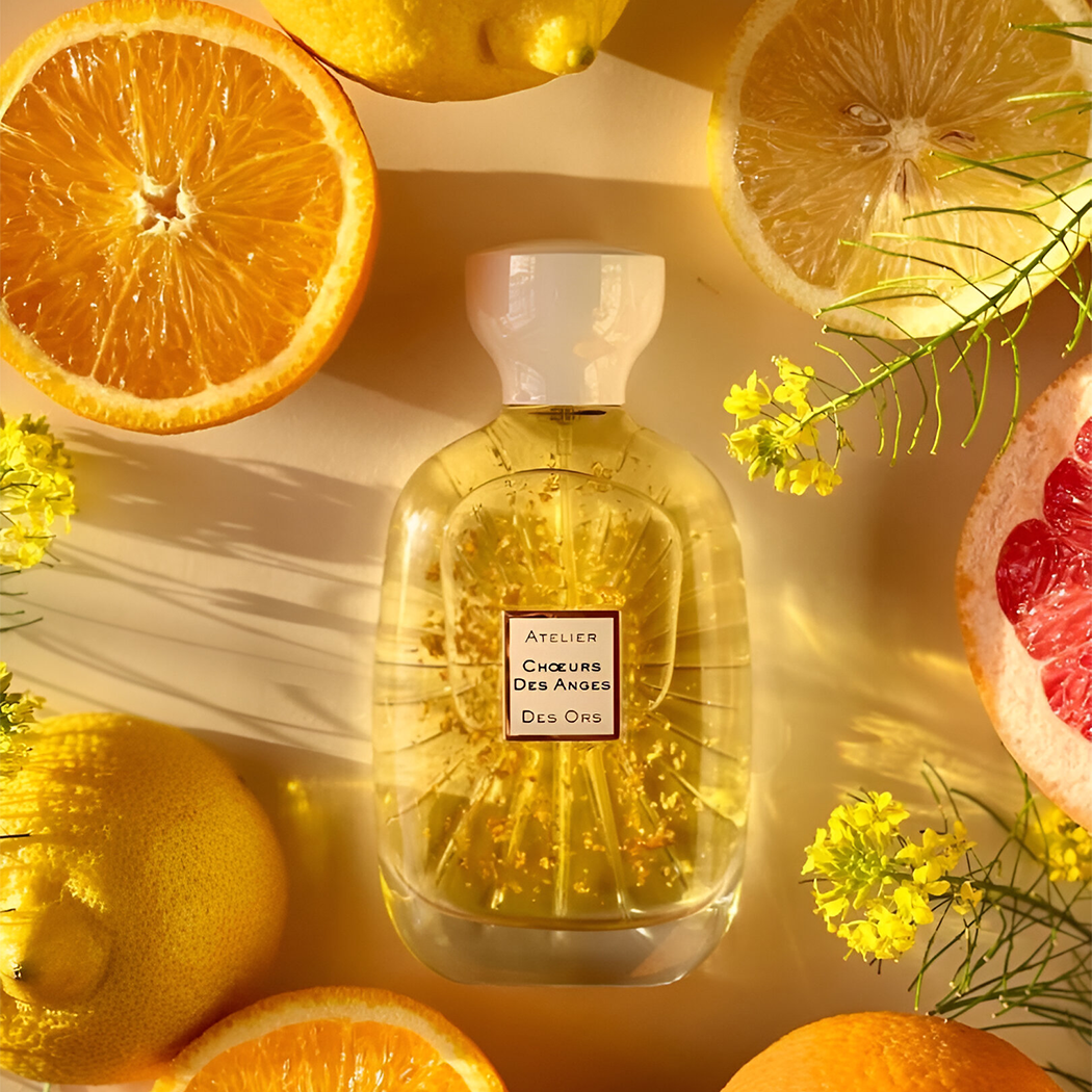 Atelier Des Ors Choeur Des Anges EDP smells like a radiant blend of blood orange, blackcurrant, pear, and orange blossom with a hint of carrot seeds.