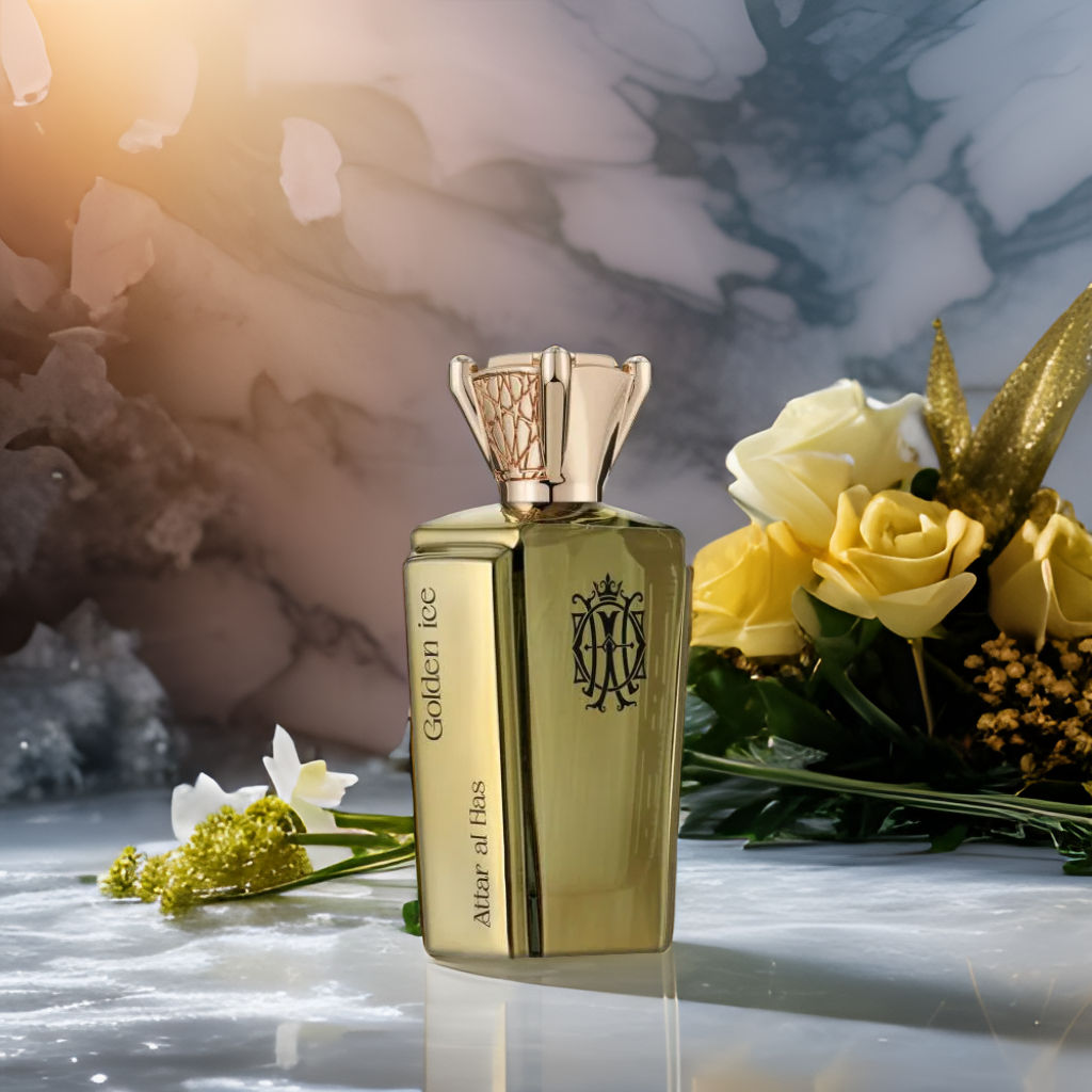 Attar Al Has Golden Ice EDP smells like a blend of aquatic notes, black currant, and warm Tonka bean, evoking an Arabian Nights-inspired Mediterranean dream.
