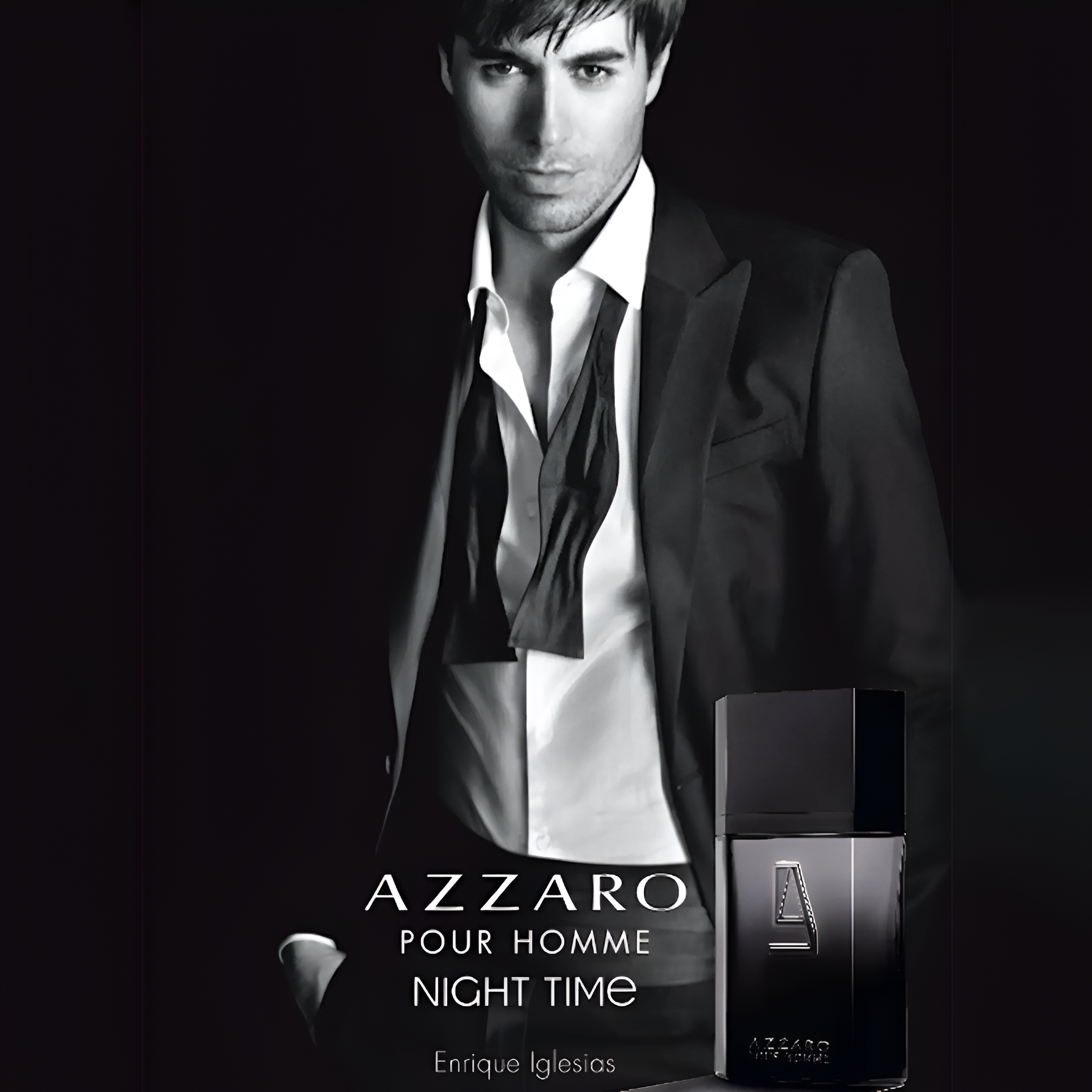 Azzaro Night Time EDT has a spicy-woody scent with hints of rhubarb, bitter orange, and cedar, capturing the essence of 1970s elegance.