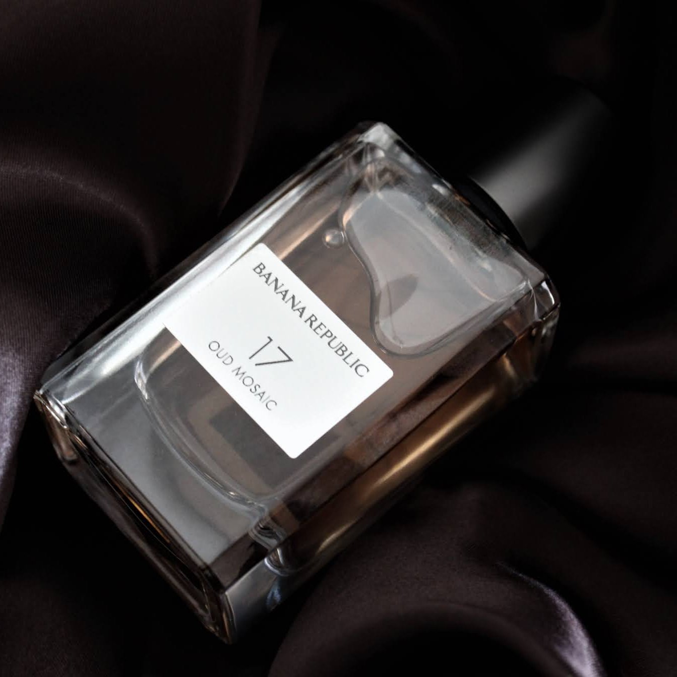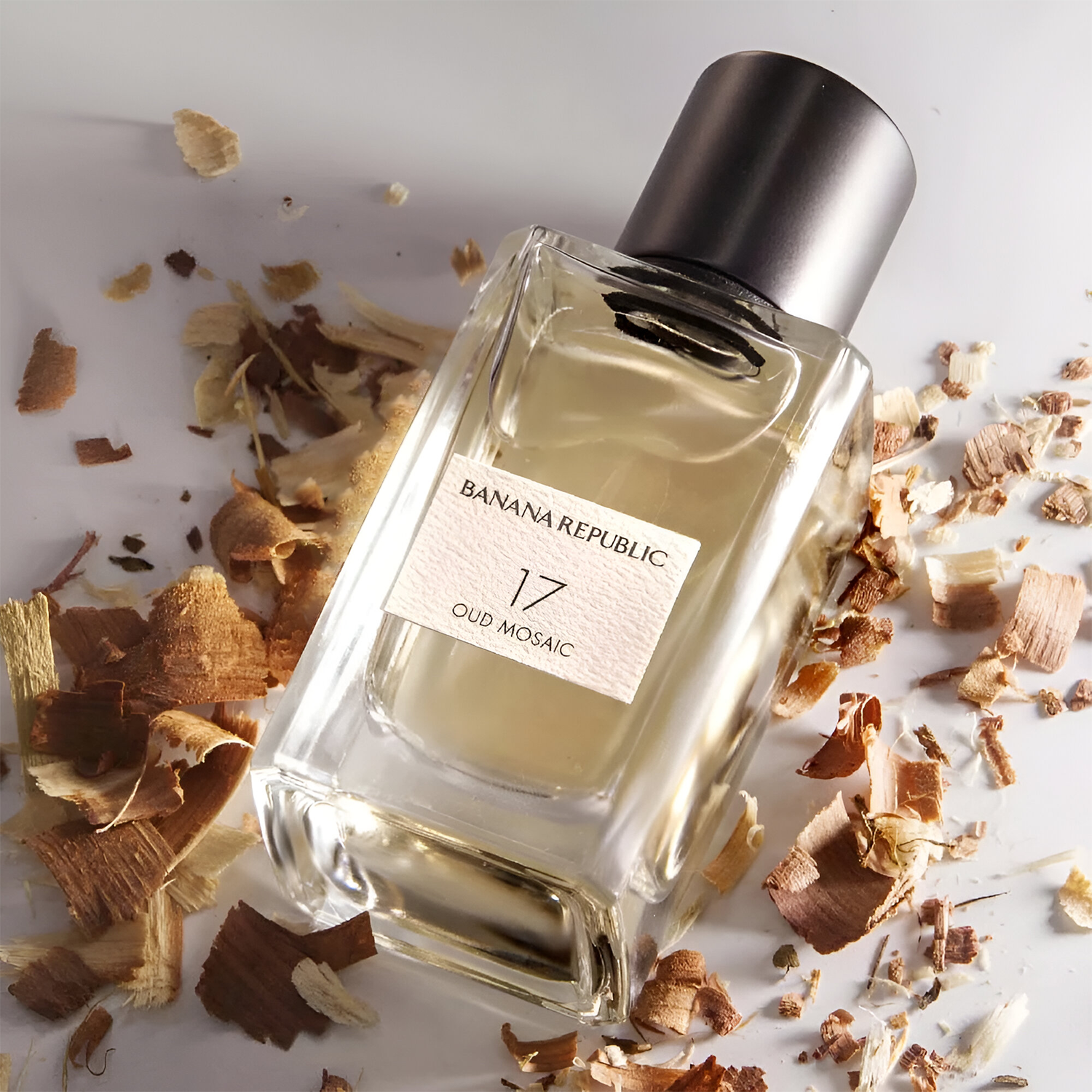Banana Republic 17 Oud Mosaic EDP has a warm and exotic scent featuring rich notes of oud wood, sweet vanilla, and hints of spicy pepper, creating a luxurious and inviting aroma.