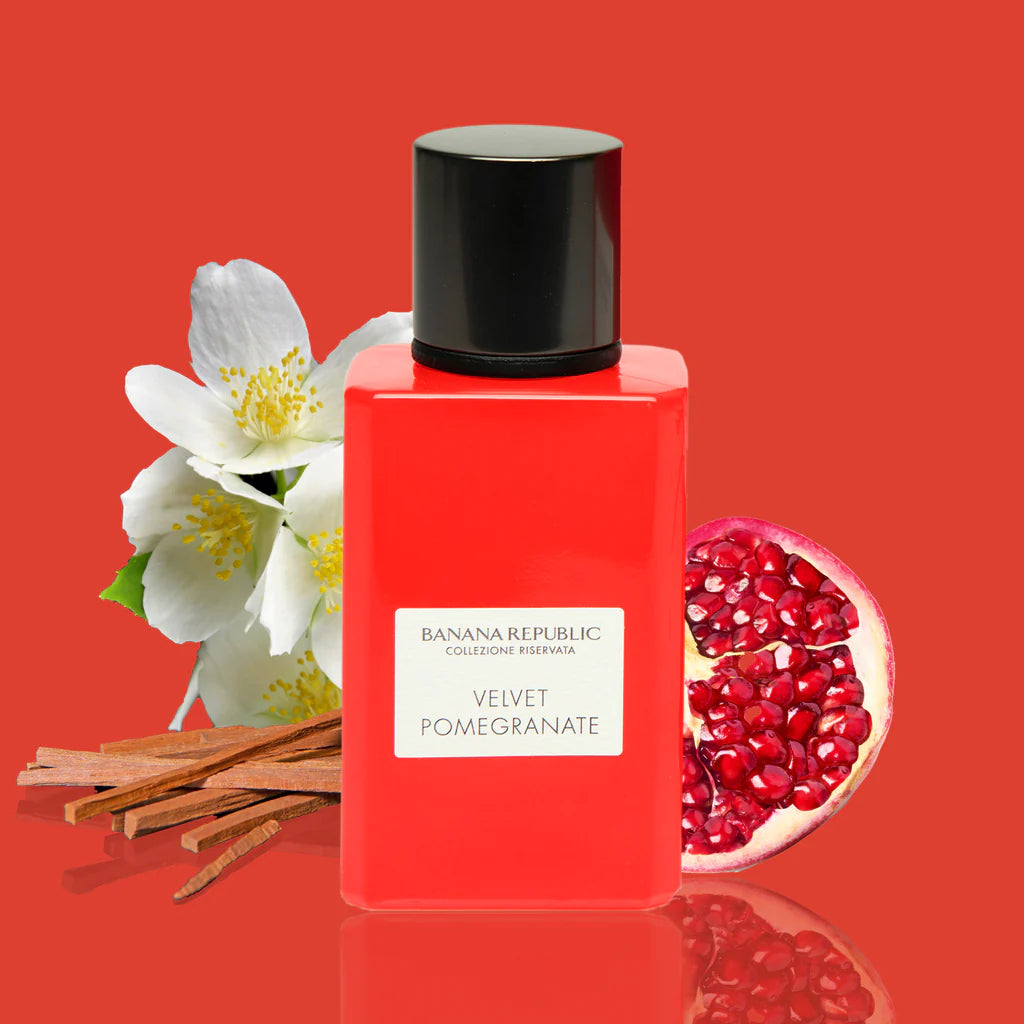 Banana Republic Collezione Riservata Velvet Pomegranate is a captivating blend of fruity sweetness and earthy warmth. This enchanting fragrance invites you on a sensory journey inspired by the vibrant pomegranates of the Mojave Desert.