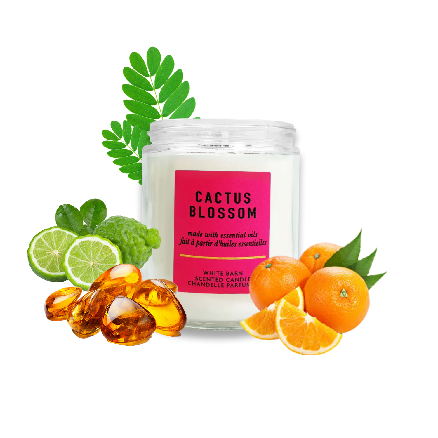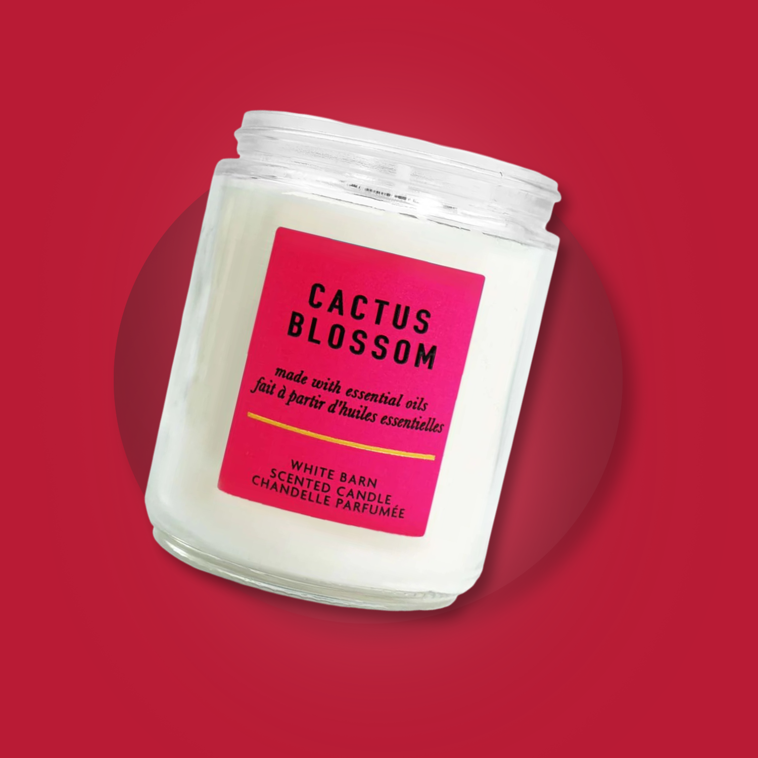 The Bath & Body Works White Barn Cactus Blossom Scented Candle smells like a refreshing blend of blooming cactus flowers, sweet fruits, and a hint of warm, sunny desert air.