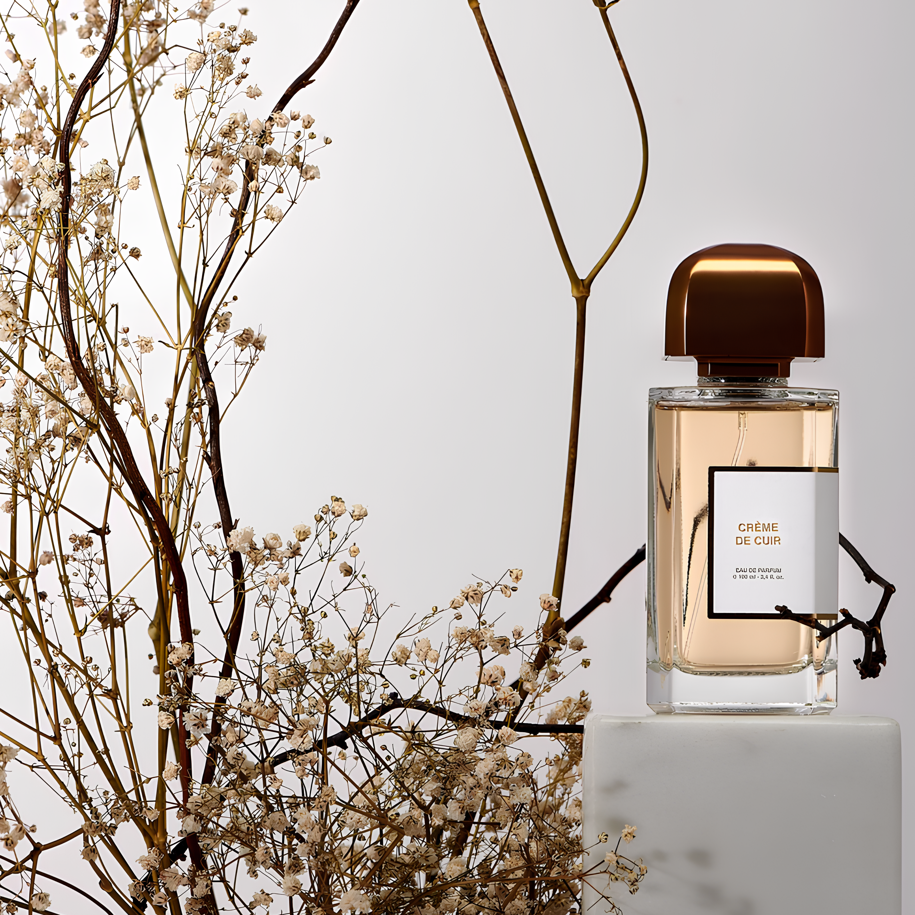 BDK Parfums Creme De Cuir EDP smells like soft white suede with a sophisticated, leather-inspired, animal-friendly scent ideal for evening wear and embodying the warmth of Indian summer.