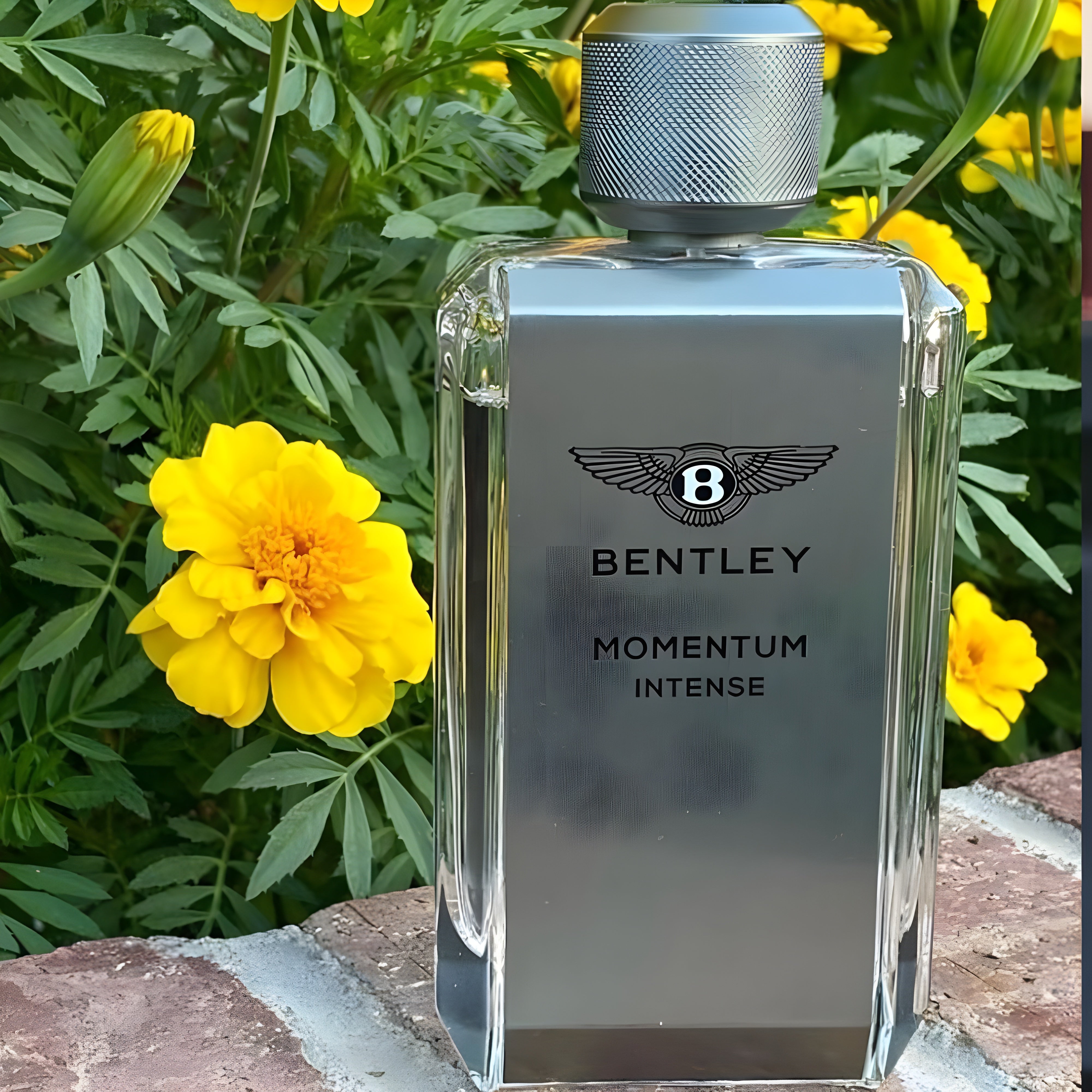 Bentley Momentum Intense EDP smells like a bold mix of elemi, lavender, and geranium, embodying sophistication and energy.